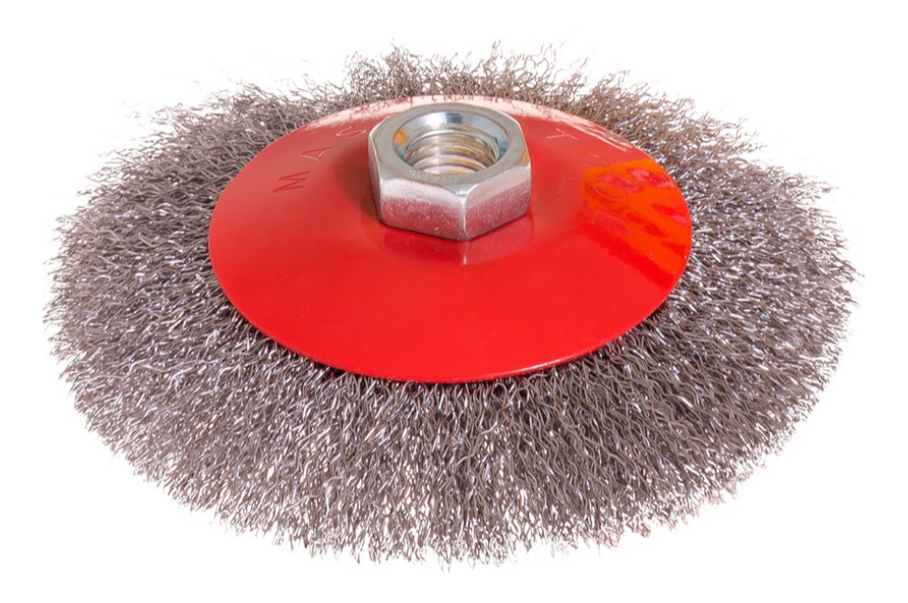 Щітка конусна з плетеними дротом для УШМ. Призначена для робіт по дереву, бетону, металу і лакофарбовим покриттям.