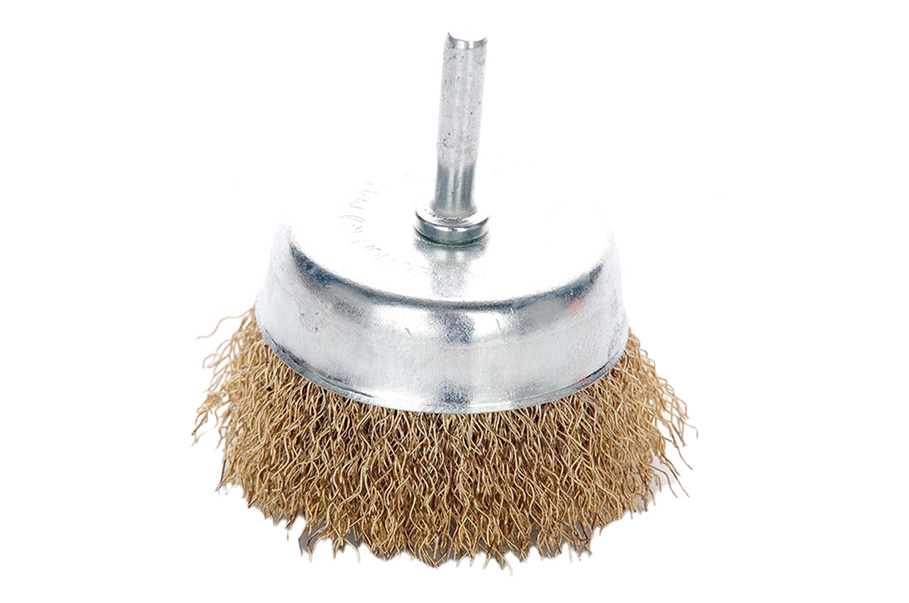 Щітка торцева (чашкова) з рифленою дротом для дрилі. Призначена для робіт по дереву, бетону, металу і лакофарбовим покриттям.