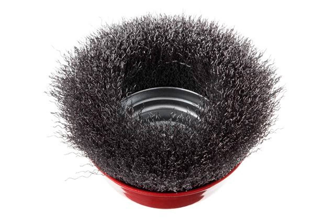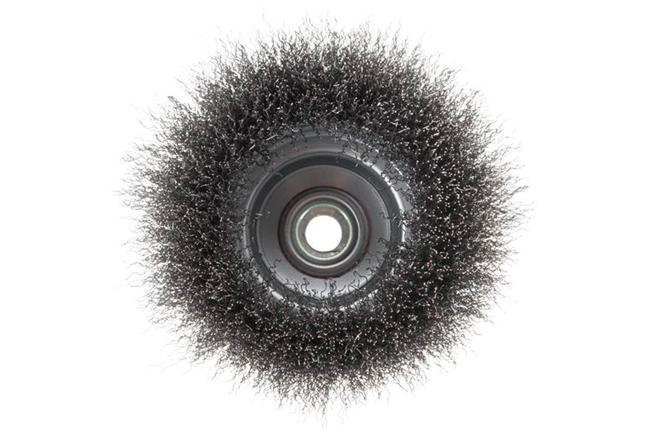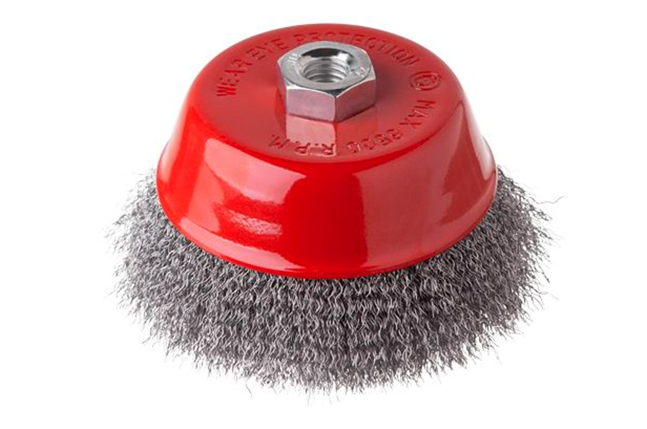 Щітка торцева (чашкова) з рифленою дротом для УШМ. Призначена для робіт по дереву, бетону, металу і лакофарбовим покриттям. Діаметр 125 мм. Швидкість обертання: 6500 об / хв Тип дроту: рифлена дріт; Швидкість обертання: 6500 об / хв; Діаметр щітки: 125 мм; Діаметр дроту: 0,3 мм; Тримач: М14; Застосування: для дерева, бетону, металу і лакофарбових покриттів