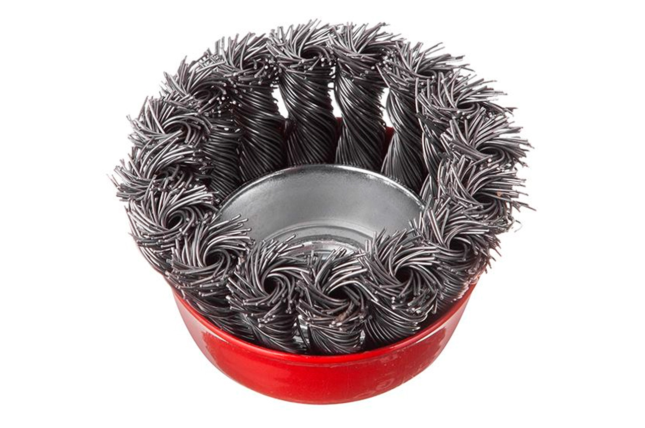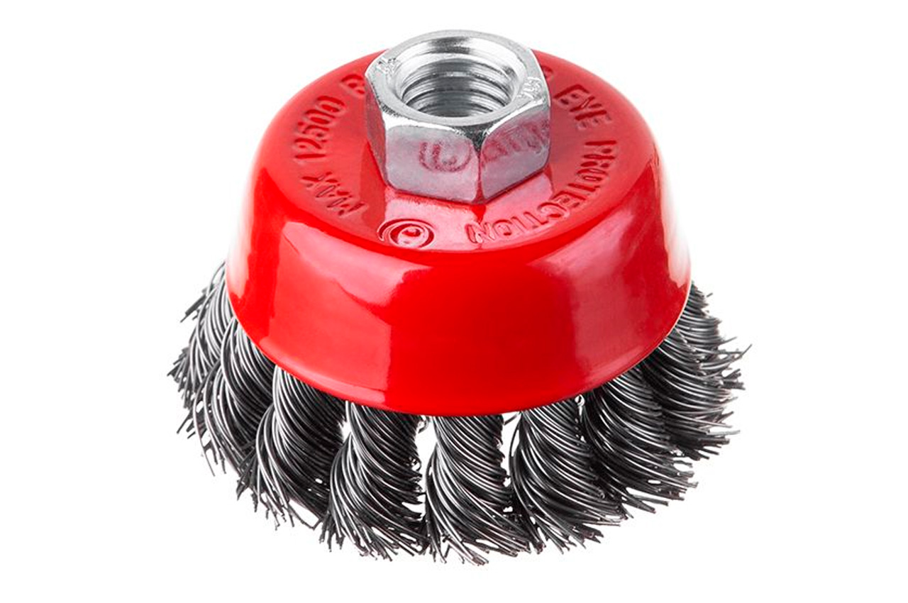 Щітка торцева (чашкова) з плетеними дротом для УШМ. Призначена для робіт по дереву, бетону, металу і лакофарбовим покриттям. Діаметр 65 мм. Швидкість обертання: 12500 об / хв. Тип дроту: плетена проволока; Швидкість обертання: 12500 об / хв; Діаметр щітки: 65 мм; Діаметр дроту: 0,5 мм; Тримач: М14; Застосування: для дерева, бетону, металу і лакофарбових покриттів