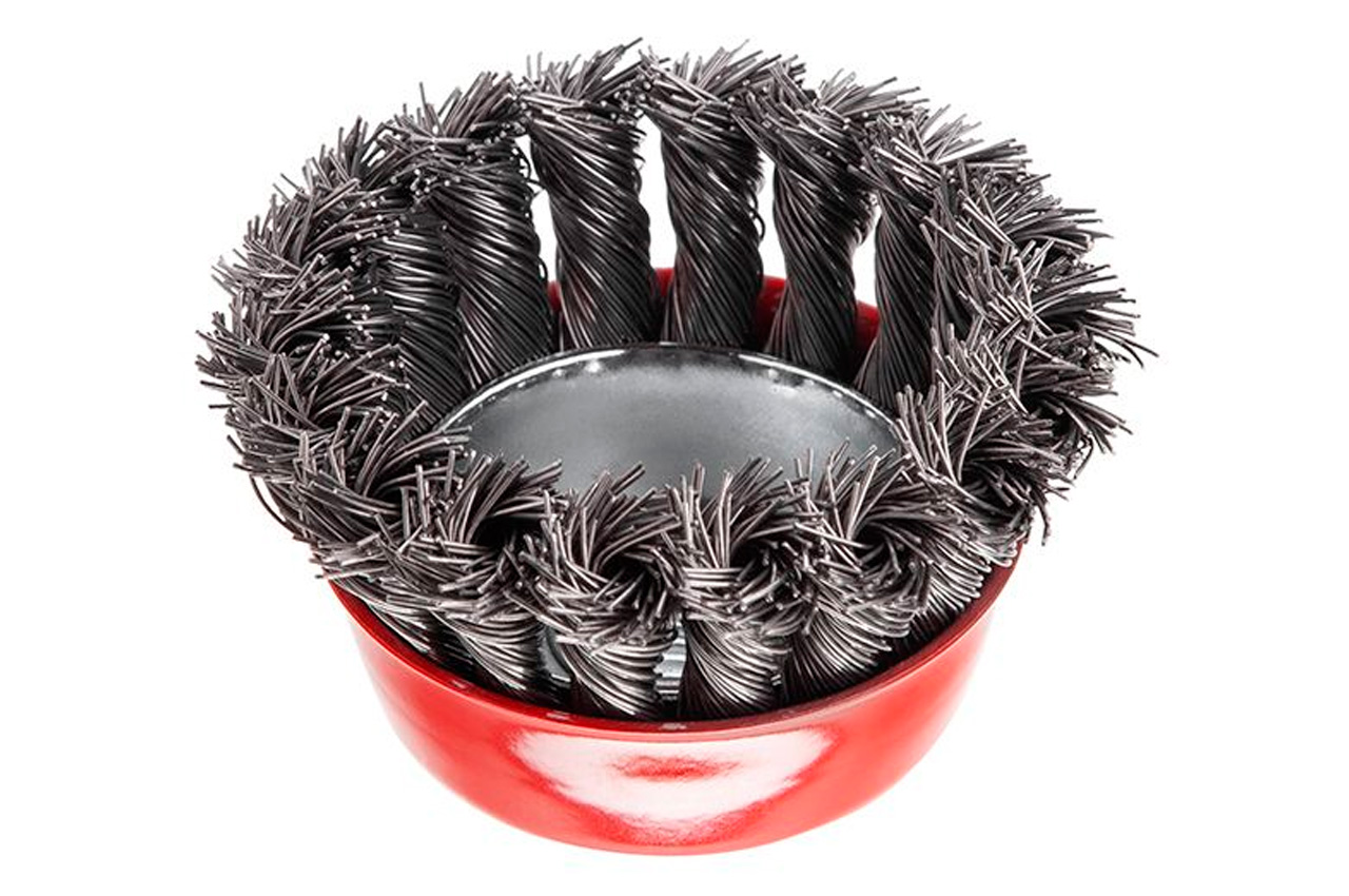 Щітка торцева (чашкова) з плетеними дротом для УШМ. Призначена для робіт по дереву, бетону, металу і лакофарбовим покриттям. Діаметр 75 мм. Швидкість обертання: 12500 об / хв. Тип дроту: плетена проволока; Швидкість обертання: 12500 об / хв; Діаметр щітки: 75 мм; Діаметр дроту: 0,5 мм; Тримач: М14; Застосування: для дерева, бетону, металу і лакофарбових покриттів