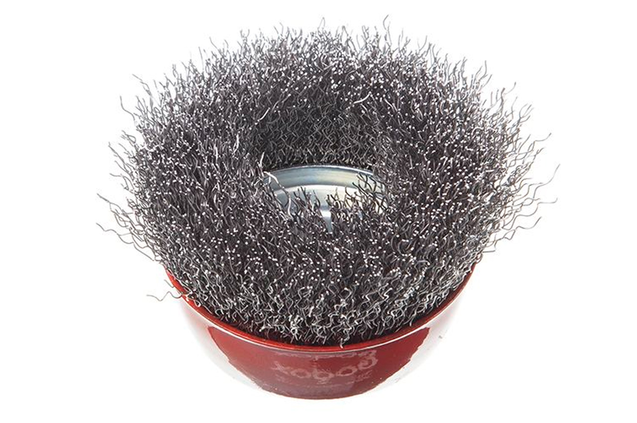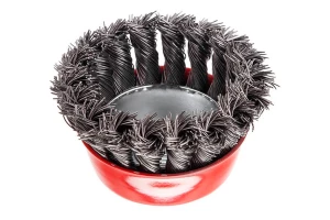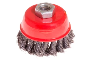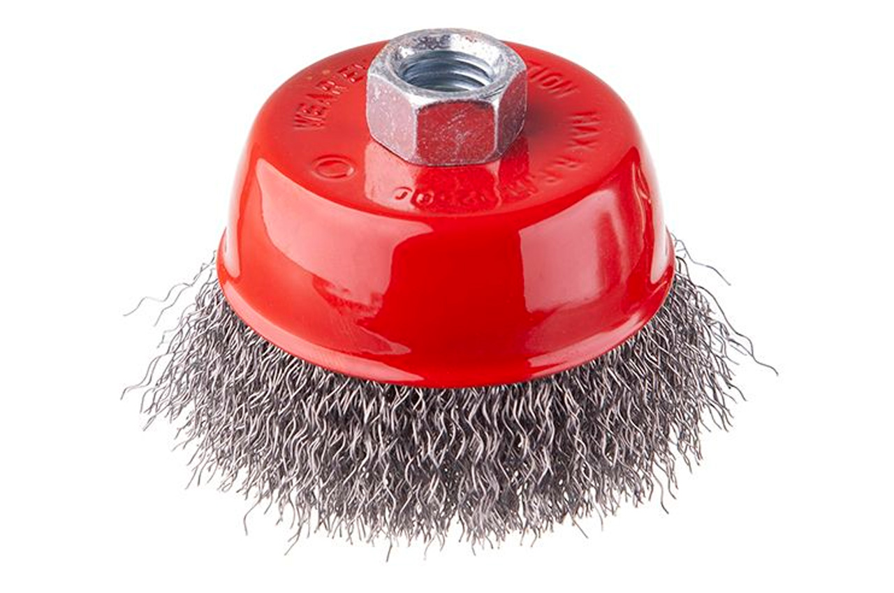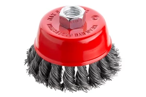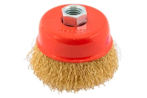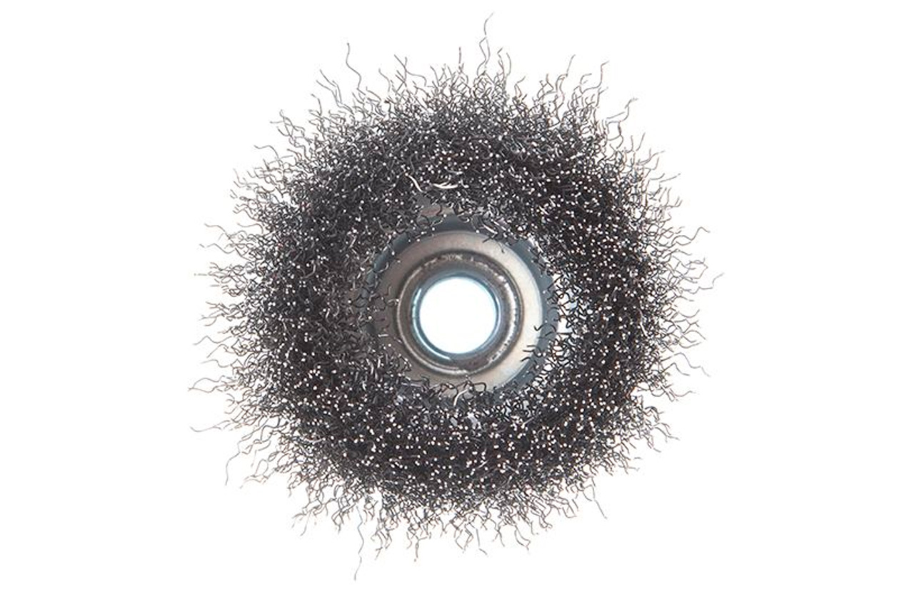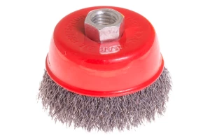 Щітка торцева (чашкова) з рифленою дротом для УШМ. Призначена для робіт по дереву, бетону, металу і лакофарбовим покриттям. Діаметр 75 мм. Швидкість обертання: 12500 об / хв Тип дроту: рифлена дріт; Швидкість обертання: 12500 об / хв; Діаметр щітки: 75 мм; Діаметр дроту: 0,3 мм; Тримач: М14; Застосування: для дерева, бетону, металу і лакофарбових покриттів