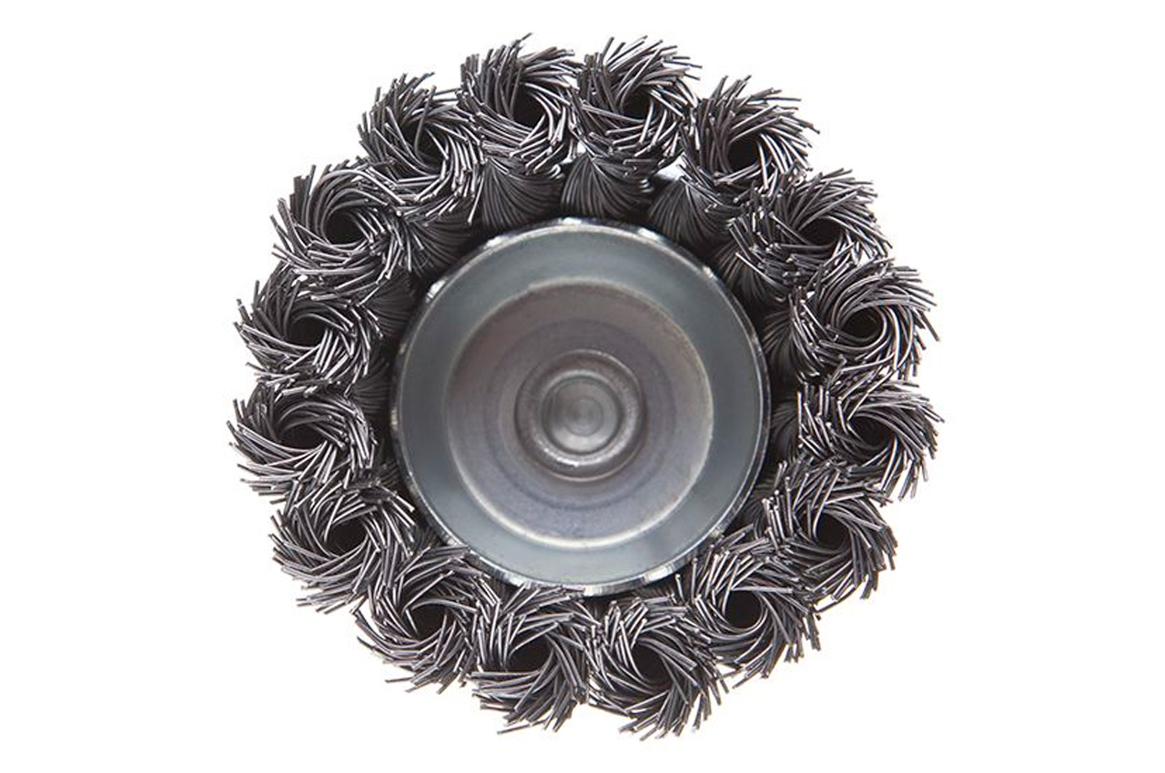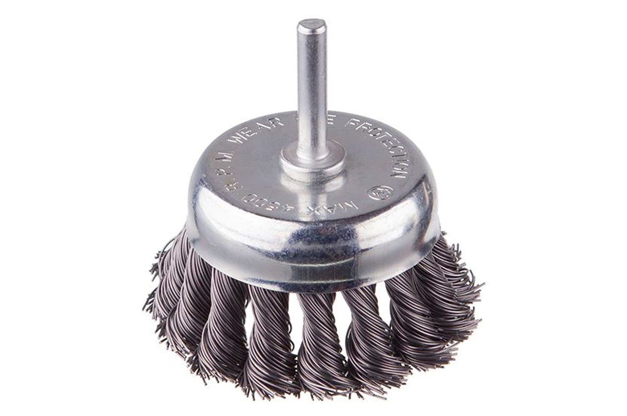 Щітка торцева з плетеної дротом для дрилі. Призначена для робіт по дереву, бетону, металу і лакофарбовим покриттям. Діаметр щітки 75 мм, стрижня - 6 мм. Швидкість обертання: 4500 об / хв Тип дроту: плетена проволока; Діаметр щітки: 75 мм; Швидкість обертання: 4500 об / хв; Діаметр дроту: 0,5 мм; Діаметр стрижня: 6 мм; Застосування: для дерева, бетону, металу і лакофарбових покриттів