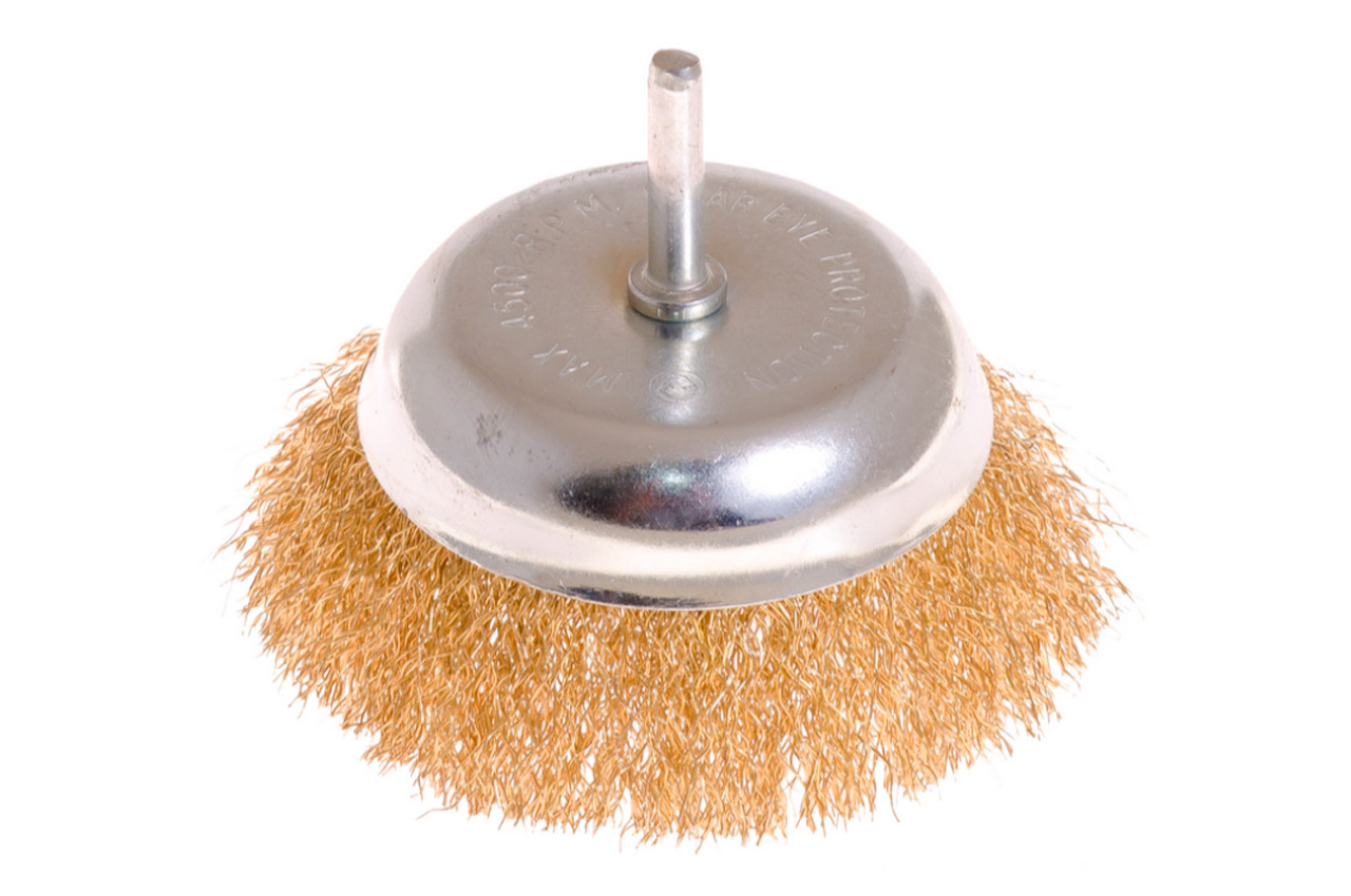 Щітка торцева з рифленою дротом для дрилі. Призначена для робіт по дереву, бетону, металу і лакофарбовим покриттям. Діаметр щітки 100 мм, стрижня - 6 мм. Швидкість обертання: 4500 об/хв