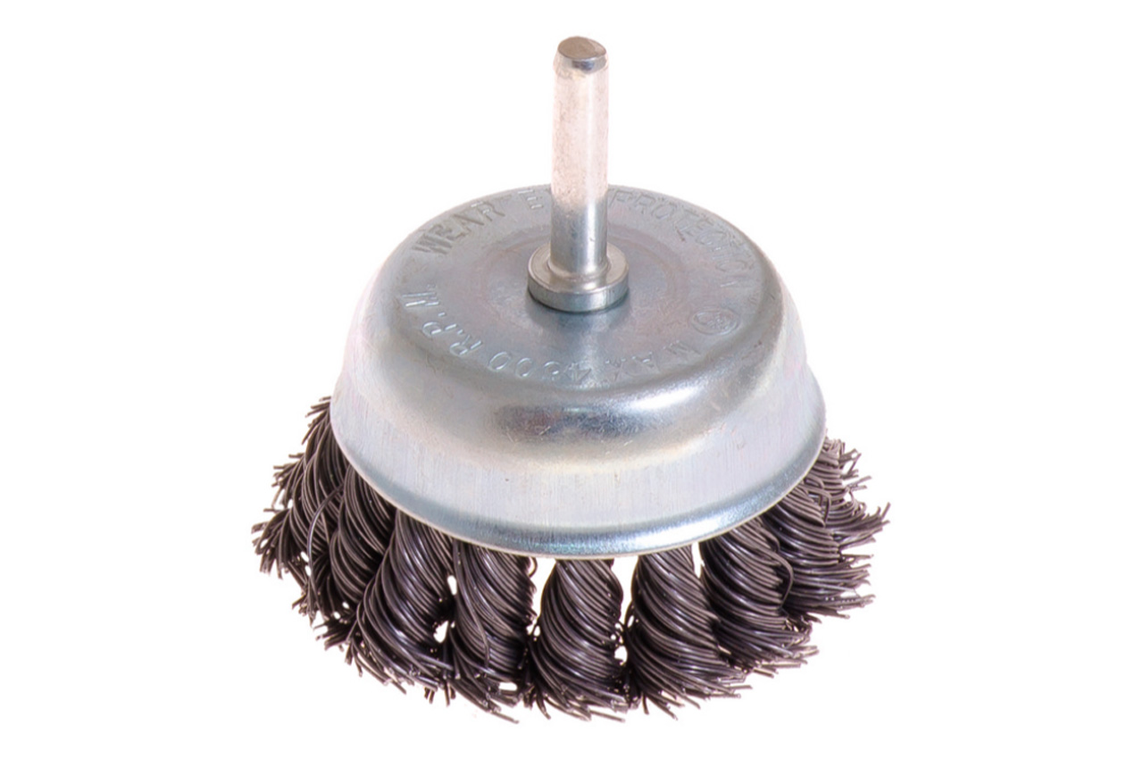 Щітка торцева з плетеної дротом для дрилі. Призначена для робіт по дереву, бетону, металу і лакофарбовим покриттям. Діаметр щітки 75 мм, стрижня - 6 мм. Швидкість обертання: 4500 об/хв