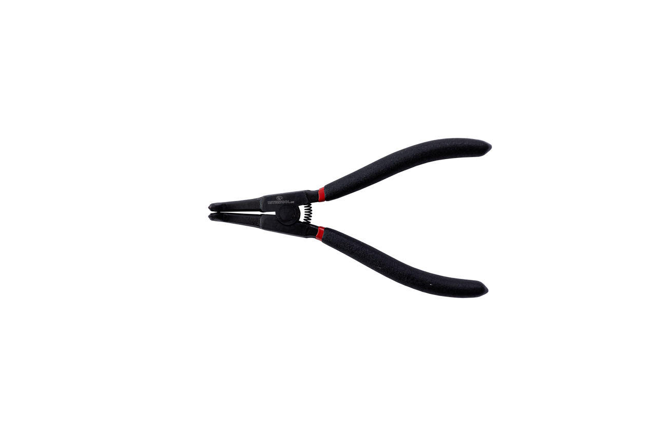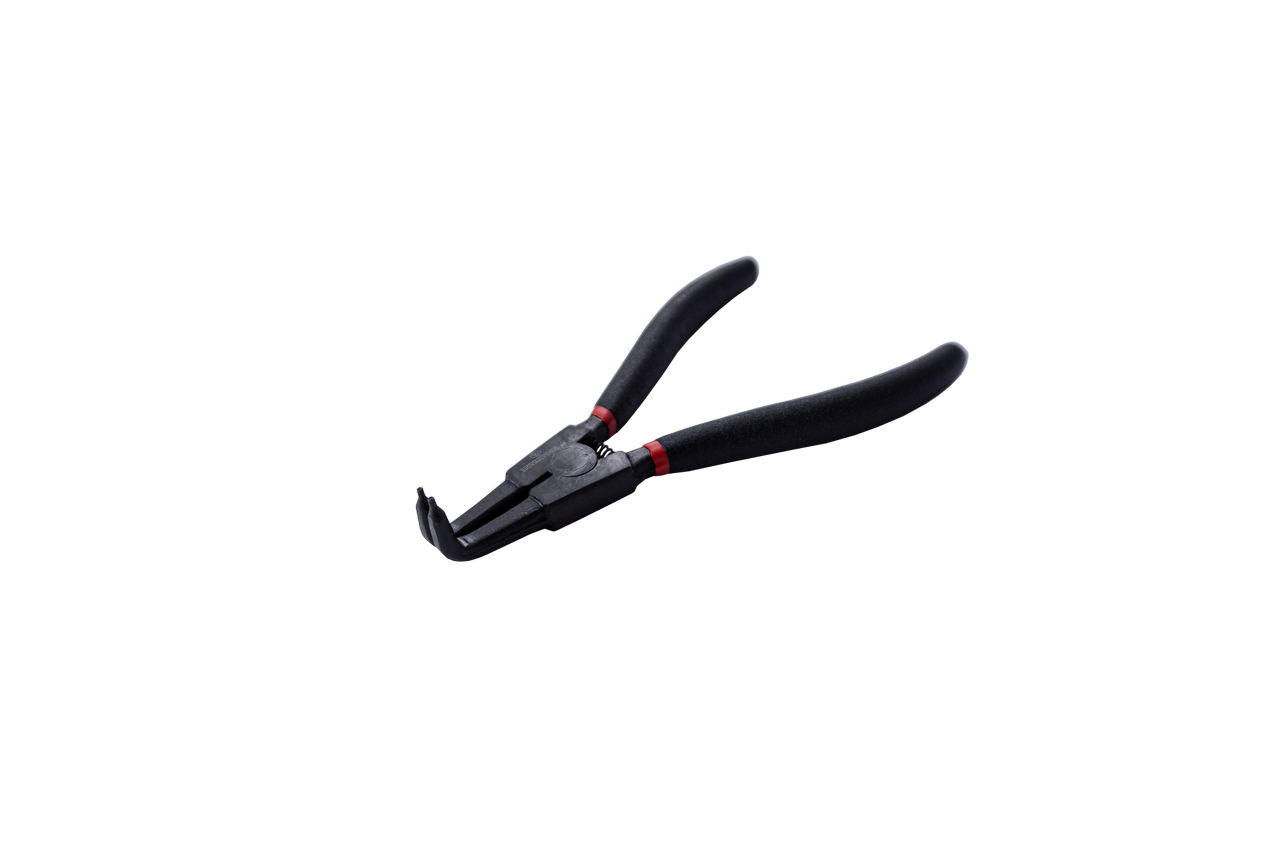 Щипці для стопорних кілець - необхідний помічник під час ремонту авто, мото техніки та ін. Це корисний інструмент на СТО, в майстерні і в будь-якому гаражі. Вигнуті щипці на разжим, довжиною 180 мм - незамінний інструмент, коли необхідна акуратна і швидка установка або зняття стопорних кілець. Виготовлені з міцної 40CrV стали, методом кування. Відрізняються підвищеною зносостійкістю і витримують значні навантаження в умовах тривалого застосування. Фосфатированной покриття захищає від зносу, тим самим щипці менше піддаються механічним пошкодженням і захищені від корозії. Прецизійні, точні наконечники щипців (Dмакс = 1,8 мм) мають спеціальну форму, що запобігає зрив і деформацію стопорного кільця. Вони пройшли спеціальну термічну обробку для досягнення високої твердості. Ручки щипців з антиковзаючим покриттям, не ковзають і забезпечують комфортну роботу. Особливості Міцні, фосфатовані щипці Прецизійні, точні наконечники Зручна нековзна ручка Особливості: фосфатовані, для кілець 19-60 мм
