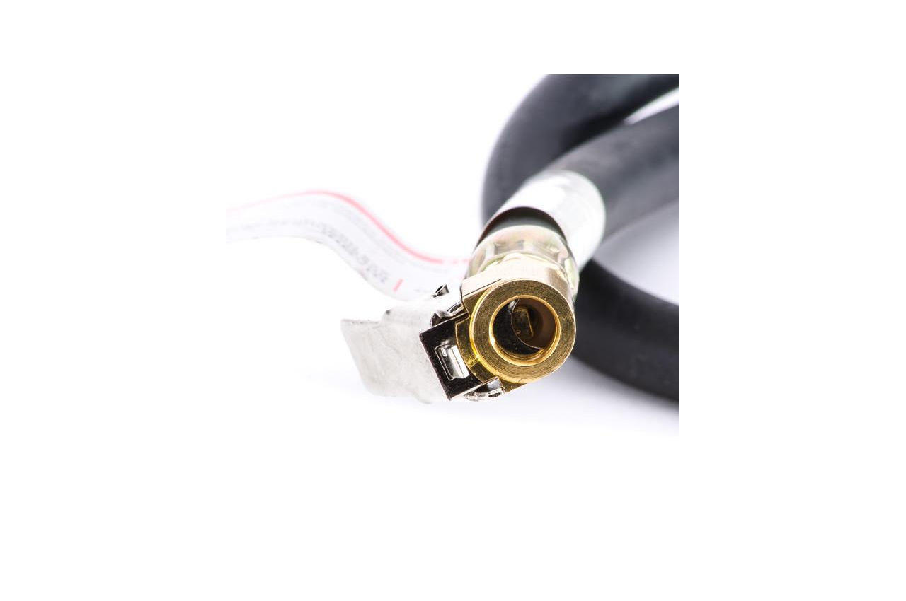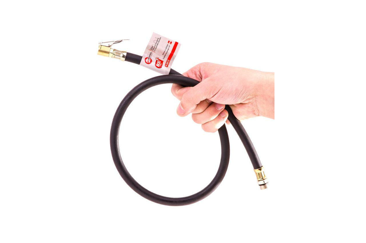 Шланг для пневмопістолети для накачування коліс оснащений латунної головкою і різьбових з'єднань 1/4 ". Шланг довжиною 800 мм відрізняється надійністю і якістю виконання. Різьблення: 1/4"; Наконечник: латунь
