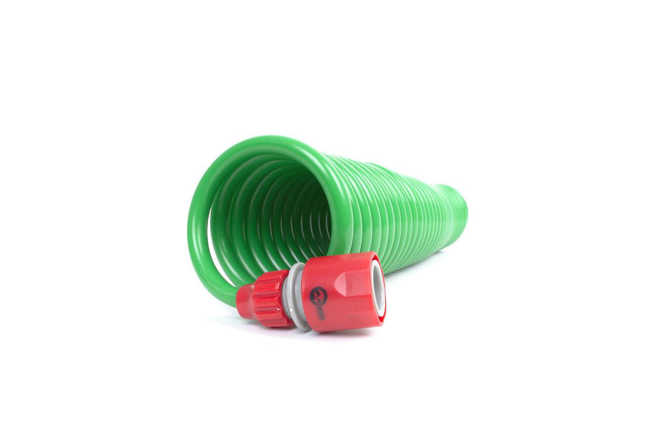 Шланг спіральний призначений для поливу газону, саду, а також для очищення доріжок, різних поверхонь та ін. Відмінно підходить для господарських робіт, поливу городу, клумб тощо. Завдяки своїм унікальним властивостям шланг легко переносити, він не перегинається та компактно складається. Шланг оснащений універсальними конекторами для швидкого монтажу розпилювачів та поливалок до джерела подачі води. З'єднання стандартних розмірів для садових поливальних інструментів 1/2" та 3/8", при цьому діаметр шланга становить 12 мм та забезпечує хорошу прохідність напору води. Шланг спіральний для поливу INTERTOOL GE-4001 виготовлений з високоякісних матеріалів: поліпропілену (PP), ABS-пластику та етиленвінілацетату (EVA) — екологічно чистого спіненого каучуку. Забезпечує високу еластичність й легкість, шланг зручно зберігати, після роботи компактно складається витками, не плутається під ногами та не загинається в процесі роботи.