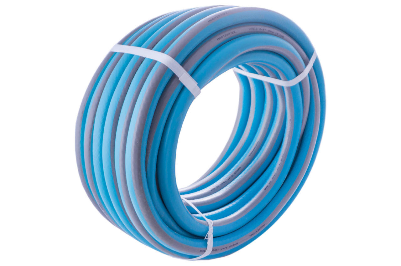 Багатошаровий поливальний шланг виготовлений з первинного PVC сировини застосовується для подачі води до систем зрошення, поливу саду, городу, газонів, пішохідних доріжок, миття автомобілейустойчів до розривів і механічних пошкоджень не утворює заломів при використанні не руйнується під впливом ультрафіолету зберігає гнучкість і еластичність в широкому діапазоні температур від -5 ° С до + 60 ° С стійкий до утворення водоростей на внутрішній поверхні не містить фталатів і важких металів діаметр 19 мм робочий тиск 15 атмосфер сітчасте армування полімерною нітьюдлітельний термін експлуатації.
