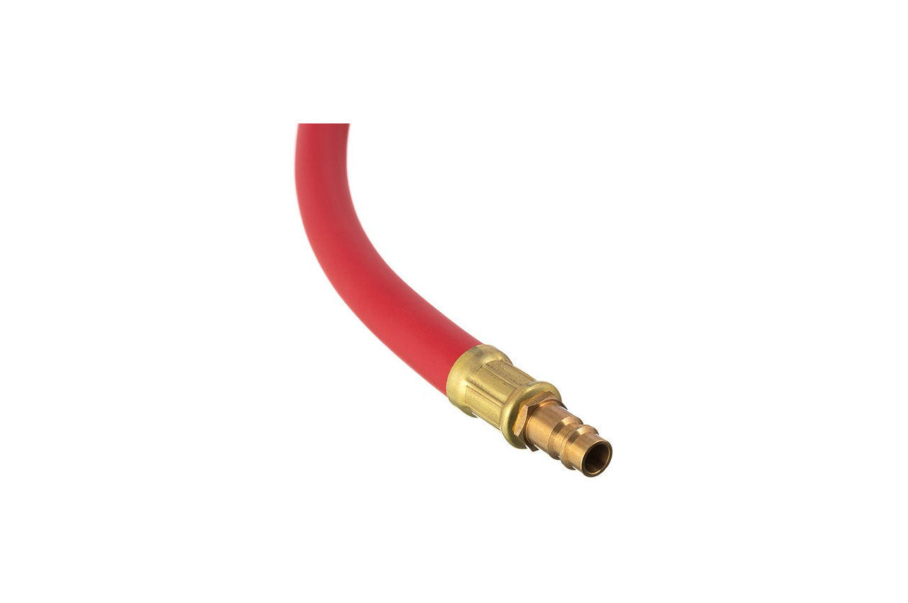Шланг виготовлений з армованого гібридного складу і зібрав в собі кращі властивості гуми і полівінілхлориду. Спеціальна формула сировини, з якого виготовляються шари шланга, роблять його еластичним, при цьому стійким до низьких і високих температур, зносостійким, маслостойкостью. Гібридні шланги стійкі до зламів і механічних пошкоджень. Міцне армування і товсті стінки шланга забезпечує роботу шланга з тиском повітря до 20 атм. Всі шланги оснащені латунними швидкороз'ємними сполуками, які мають ряд переваг перед сталевими, такі як довговічність, стійкість до корозії, більший термін експлуатації і т.д. Переваги: Тришаровий еластичний, зносостійкий. Стійкий до впливу масел і вологи. Тиск до 20 атм. Температура експлуатації від -20 ° С до + 60 ° С. Латунні швидкороз'ємні з'єднання. Модель PT-тисяча сімсот шістьдесят один PT-1762 PT-1763 PT-тисяча сімсот сімдесят одна PT-тисячі сімсот сімдесят дві PT-1 773 PT-1781 PT-одна тисяча сімсот вісімдесят два PT-1783 Довжина, м 10 20 30 10 20 30 10 20 30 Діаметр, мм 6 * 11 6 * 11 6 * 11 8 * 15 8 * 15 8 * 15 10 * 17 10 * 17 10 * 17 сполуки швидко (латунь) + + + + + + + + + Довжина шланга: 30 м; Діаметр шланга: 10 * 17 мм; Робочий тиск: до 20 бар; Температура зовнішнього середовища: від -20 до +60 ° С