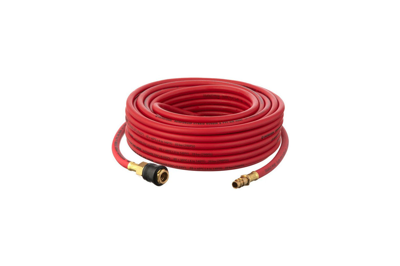 Шланг виготовлений з армованого гібридного складу і зібрав в собі кращі властивості гуми і полівінілхлориду. Спеціальна формула сировини, з якого виготовляються шари шланга, роблять його еластичним, при цьому стійким до низьких і високих температур, зносостійким, маслостойкостью. Гібридні шланги стійкі до зламів і механічних пошкоджень. Міцне армування і товсті стінки шланга забезпечує роботу шланга з тиском повітря до 20 атм. Всі шланги оснащені латунними швидкороз'ємними сполуками, які мають ряд переваг перед сталевими, такі як довговічність, стійкість до корозії, більший термін експлуатації і т.д. Переваги: Тришаровий еластичний, зносостійкий. Стійкий до впливу масел і вологи. Тиск до 20 атм. Температура експлуатації від -20 ° С до + 60 ° С. Латунні швидкороз'ємні з'єднання. Модель PT-тисяча сімсот шістьдесят один PT-тисяча сімсот шістьдесят дві PT-тисячі сімсот шістьдесят-три PT-тисячі сімсот сімдесят одна PT-один тисячу сімсот сімдесят дві PT-1 773 PT-1781 PT-1782 PT-1783 Довжина, м 10 20 30 10 20 30 10 20 30 Діаметр, мм 6 * 11 6 * 11 6 * 11 8 * 15 8 * 15 8 * 15 10 * 17 10 * 17 10 * 17 сполуки швидко (латунь) + + + + + + + + + Довжина шланга: 20 м; Діаметр шланга: 6 * 11 мм; Робочий тиск: до 20 бар; Температура зовнішнього середовища: від -20 до +60 ° С