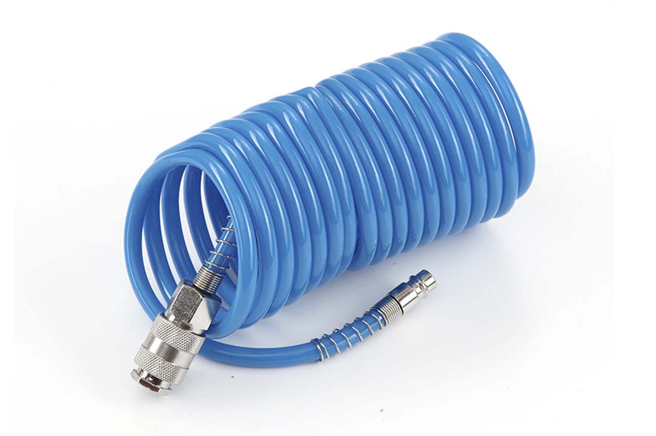 Шланг спіральний Apro - призначений для подачі стисненого повітря від компресора до пневмоінструменту. Завдяки поліуретановому матеріалу, виріб відрізняється підвищеною еластичністю та міцністю. Шланг не схильний до гідролізу і має хорошу стійкість до впливу озону і мікроорганізмів. Шланг має довжину 15 метрів і укомплектований двома швидкознімними перехідниками 5,5 x 8 мм.