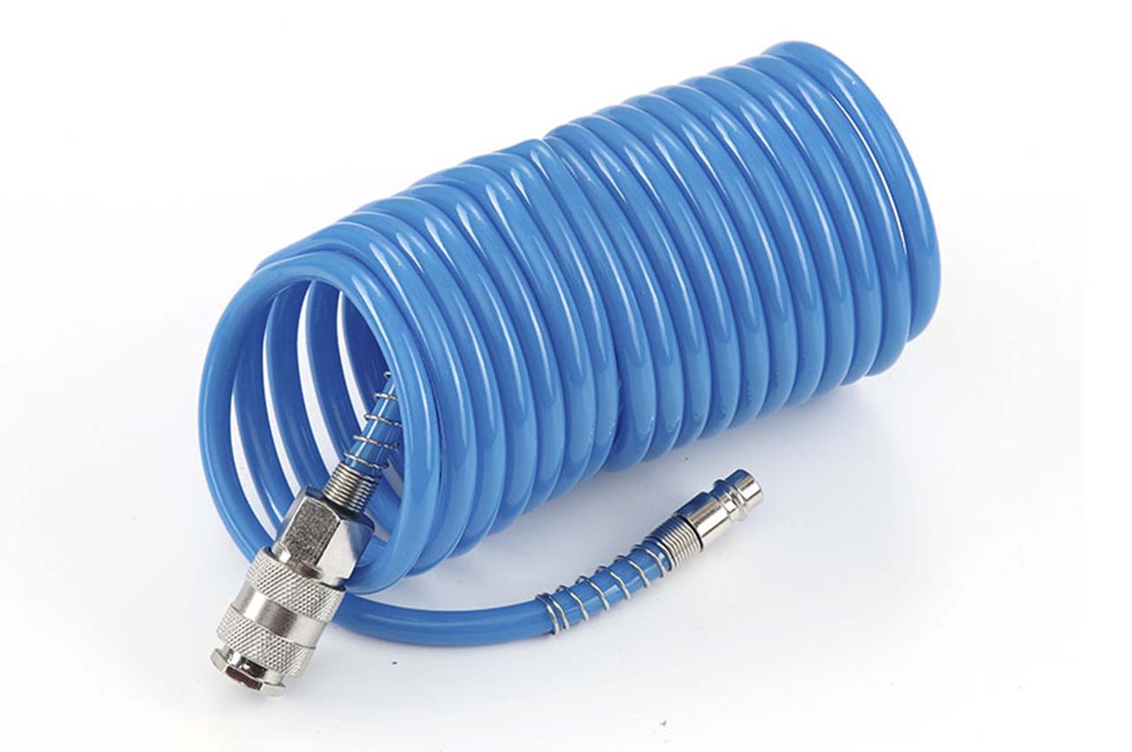 Шланг спіральний Apro - призначений для подачі стисненого повітря від компресора до пневмоінструменту. Завдяки поліуретановому матеріалу, виріб відрізняється підвищеною еластичністю та міцністю. Шланг не схильний до гідролізу і має хорошу стійкість до впливу озону і мікроорганізмів. Шланг має довжину 20 метрів і укомплектований двома швидкознімними перехідниками 5,5 x 8 мм.