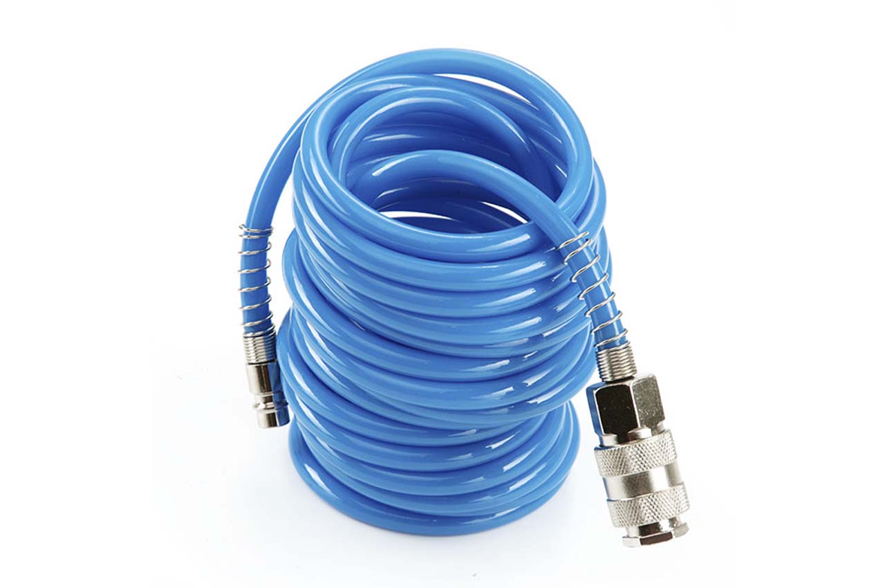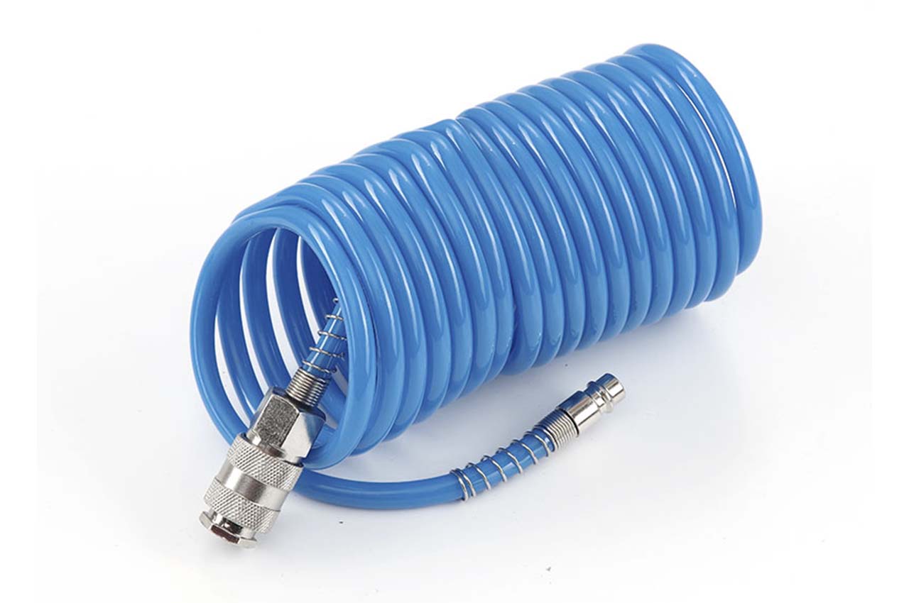 Шланг спіральний Apro - призначений для подачі стисненого повітря від компресора до пневмоінструменту. Завдяки поліуретановому матеріалу, виріб відрізняється підвищеною еластичністю та міцністю. Шланг не схильний до гідролізу і має хорошу стійкість до впливу озону і мікроорганізмів. Шланг має довжину 5 метрів і укомплектований двома швидкознімними перехідниками 5,5 x 8 мм.
