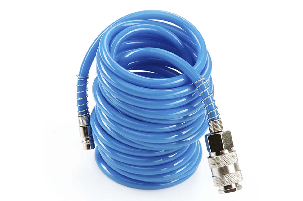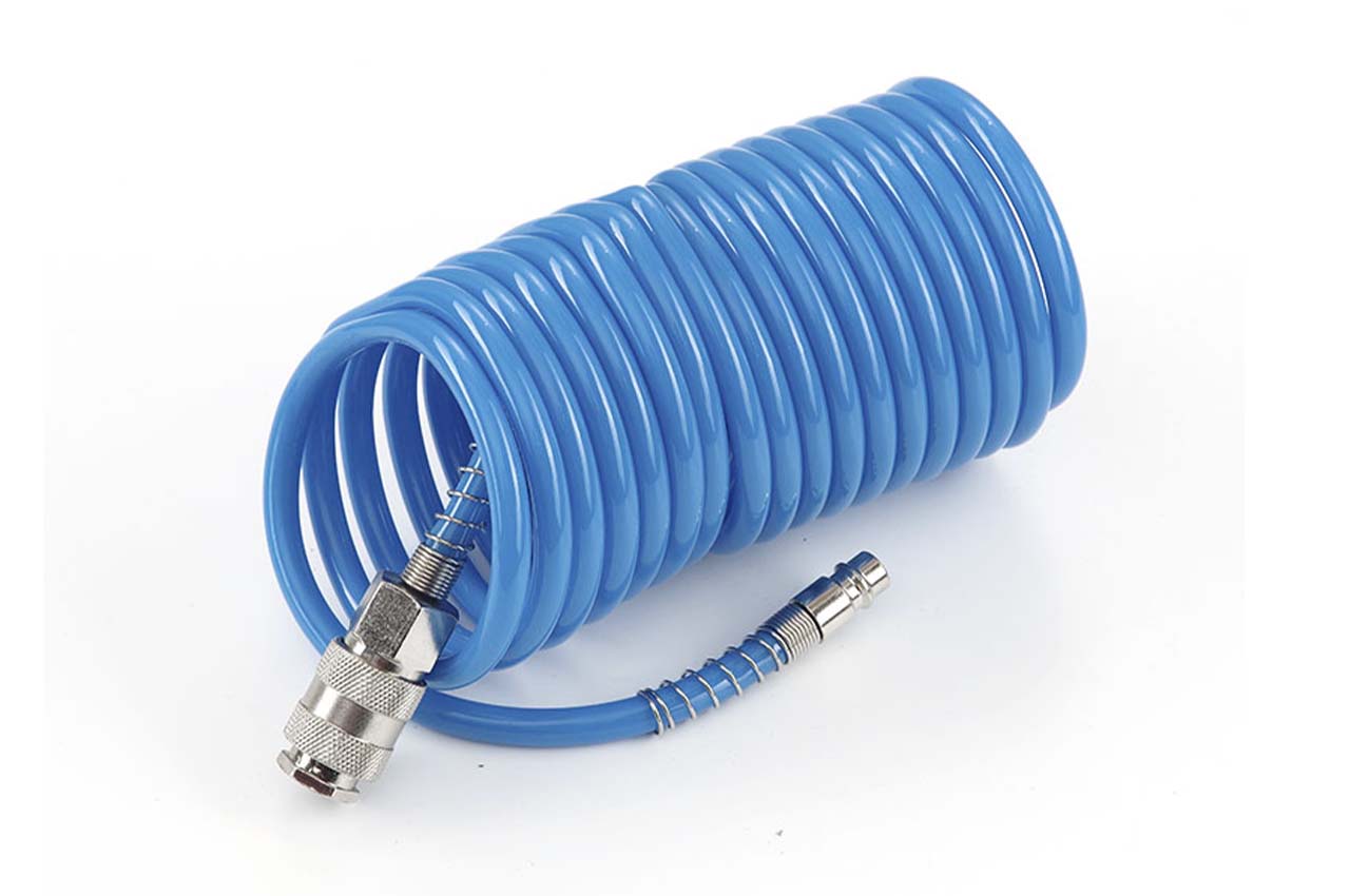 Шланг спіральний Apro - призначений для подачі стисненого повітря від компресора до пневмоінструменту. Завдяки поліуретановому матеріалу, виріб відрізняється підвищеною еластичністю та міцністю. Шланг не схильний до гідролізу і має хорошу стійкість до впливу озону і мікроорганізмів. Шланг має довжину 10 метрів і укомплектований двома швидкознімними перехідниками 6,5 x 10 мм.