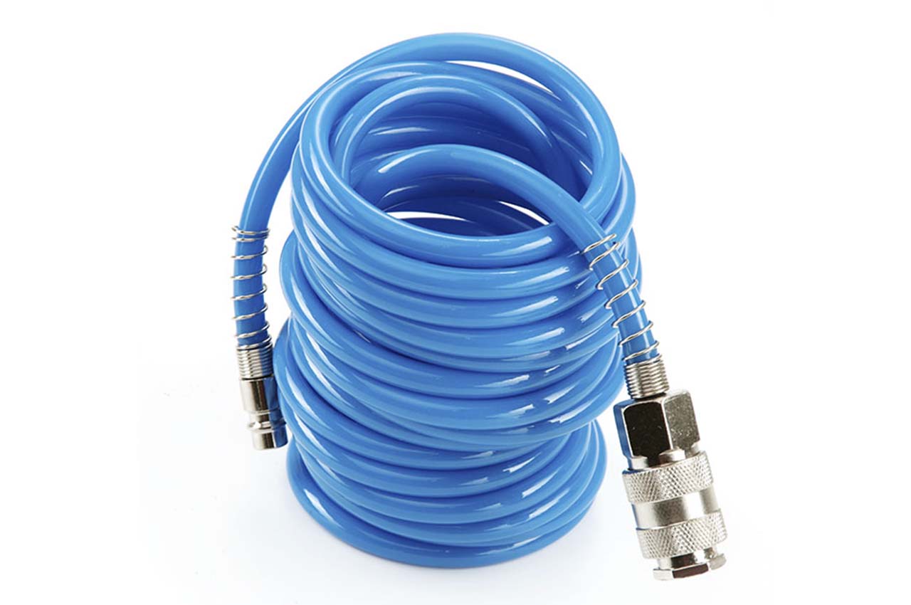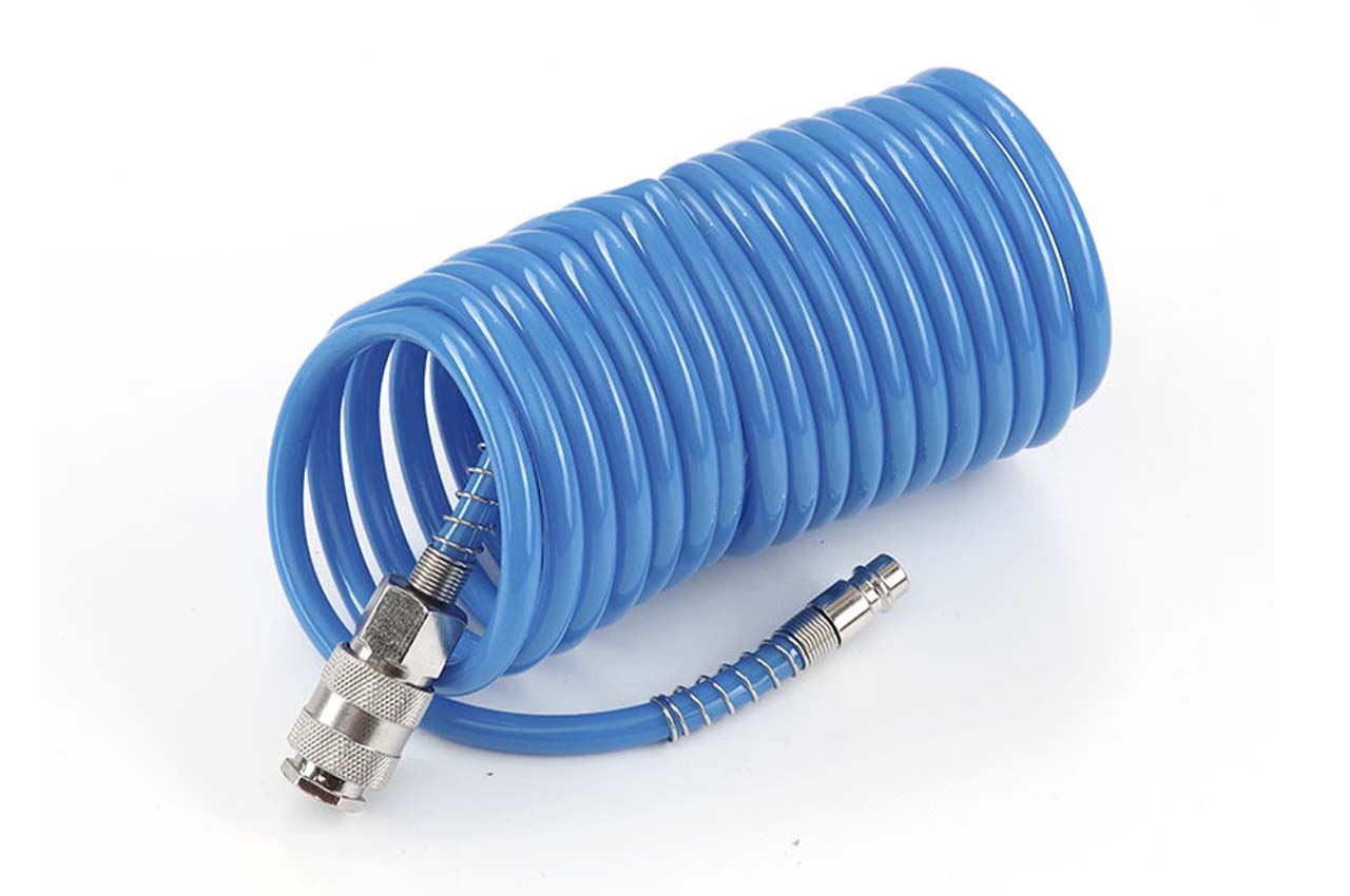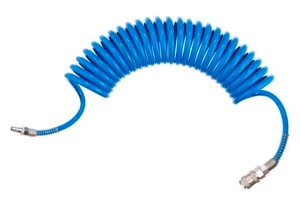 Шланг спіральний Apro - призначений для подачі стисненого повітря від компресора до пневмоінструменту. Завдяки поліуретановому матеріалу, виріб відрізняється підвищеною еластичністю та міцністю. Шланг не схильний до гідролізу і має хорошу стійкість до впливу озону і мікроорганізмів. Шланг має довжину 5 метрів і укомплектований двома швидкознімними перехідниками 6,5 x 10 мм.