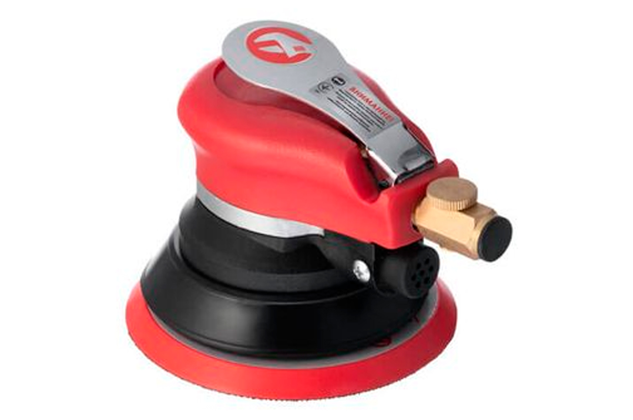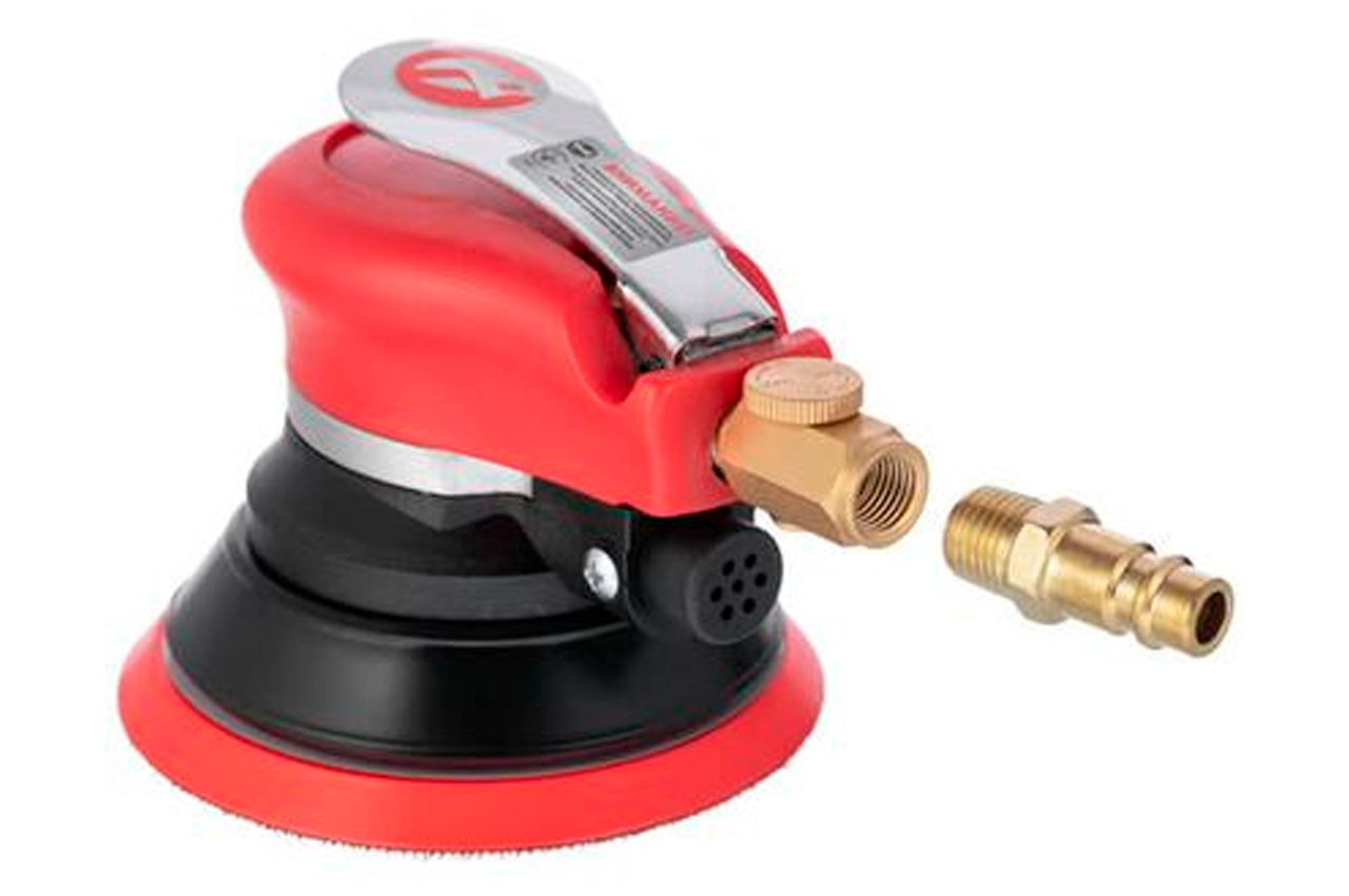 Шліфмашина пневматична ексцентрикова PT-1006 має дуже ергономічний дизайн, прогумований корпус і зручну клавішу запуску на корпусі, що робить роботу з даним інструментом більш комфортною. Для ефективної роботи інструменту сила натискання на нього повинна бути приблизно 5-7 кг. Також на даній Стрічкові шліфувальні машини передбачений регулятор швидкості і додаткова платформа. Швидкість обертання РТ-1006 становить 9000 об / хв, діаметр диска 125 мм, а діаметр платформи 5 ". Використовуються диски PT-2125 (125 мм). Діаметр диска: 125 мм; Швидкість обертання: 9000 об / хв; Робочий тиск: до 6 атм; Витрата повітря: 340 л / хв; Діаметр шланга: 8-10 мм