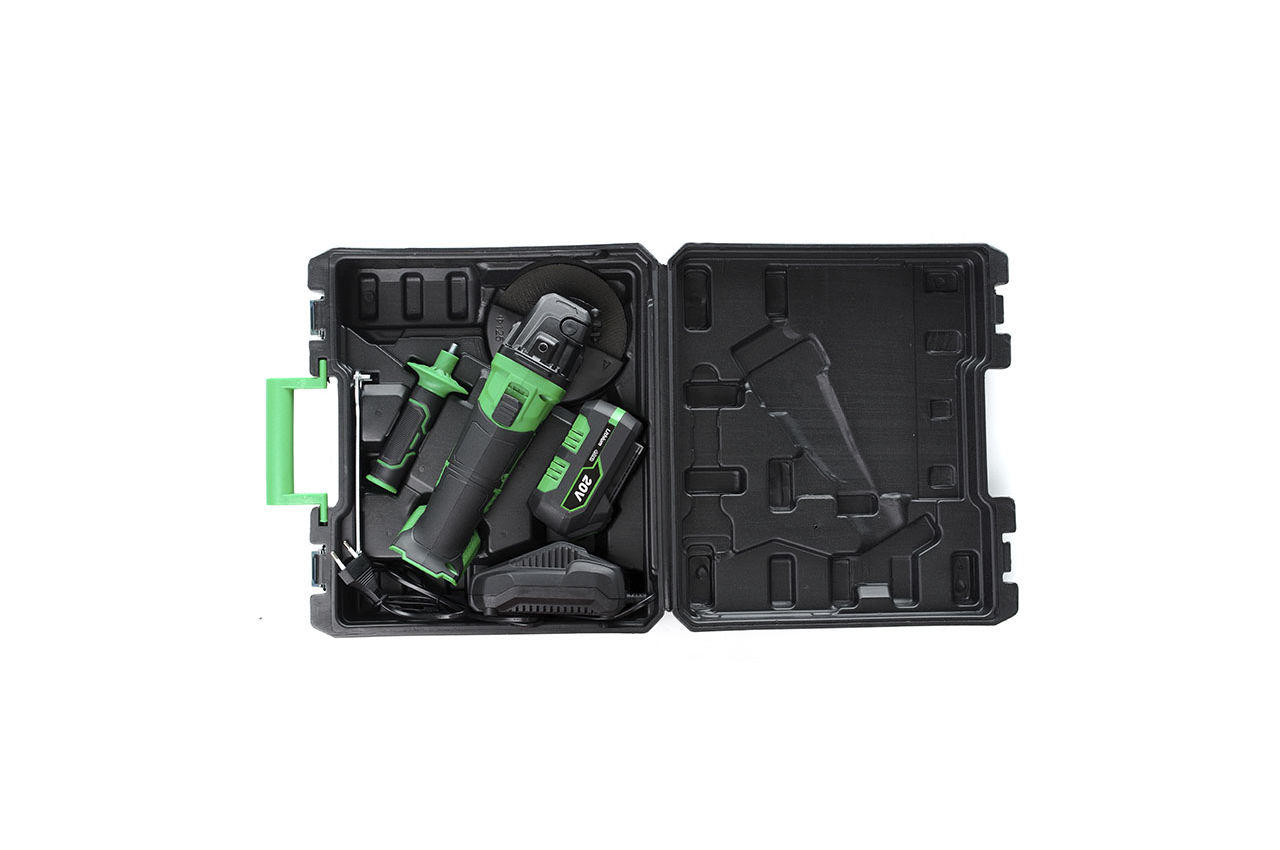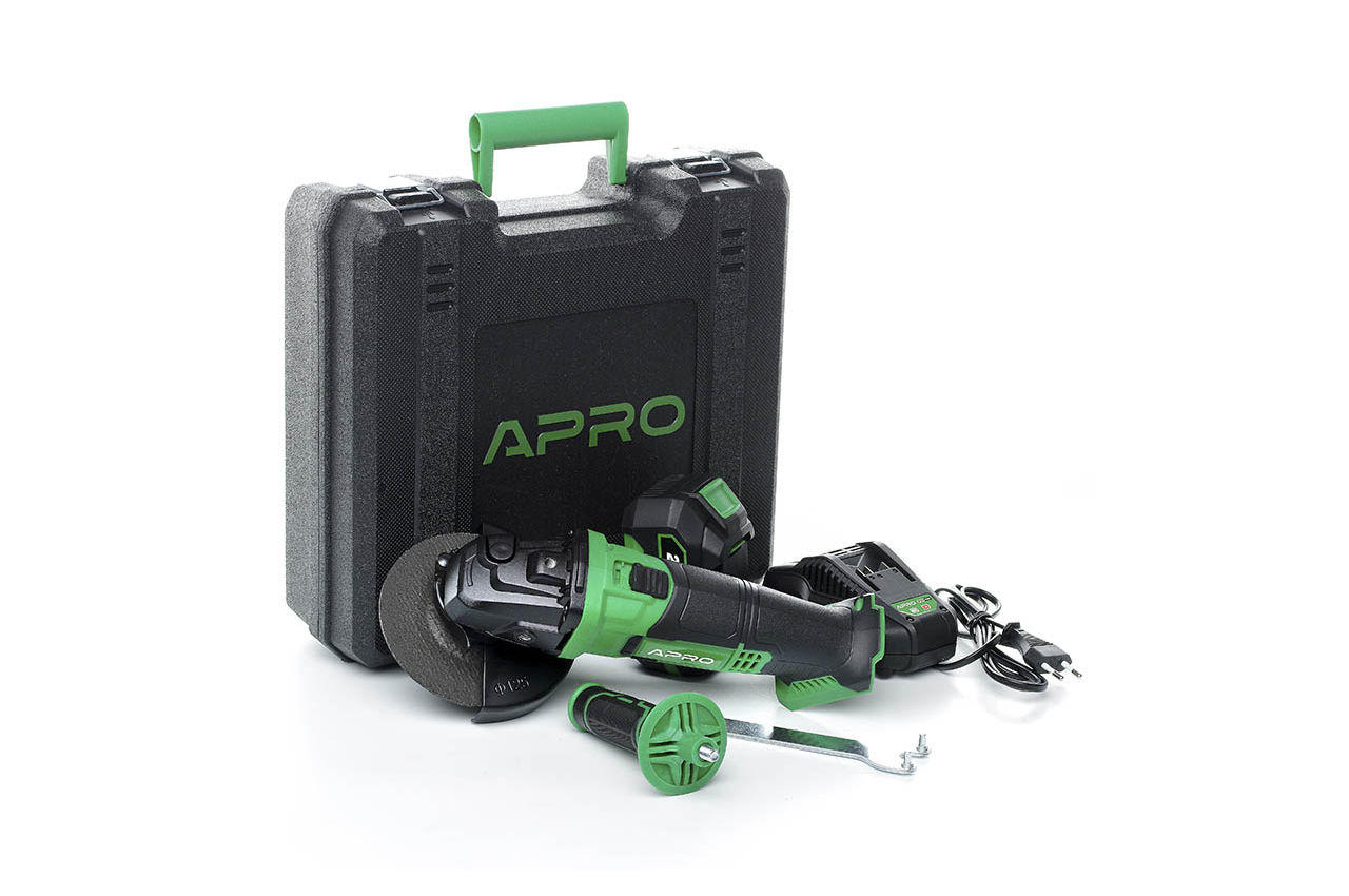 Шліфмашина кутова акумуляторна Apro-20AG призначений для різання, шліфування та зачистки деталей з металу та сплавів. Універсальна модель легко впорається з побутовими та професійними завданнями. Використовується в будівництві для різання арматури, металу, каменю, плитки, кераміки, цегли, бетону і т.д. Легко шліфує деревину та метал диском діаметром 125 мм. Модель компактного розміру, низький рівень вібрації та шуму 6,1 м/с. Має ергономічний корпус із удароміцного пластику. Висока потужність забезпечує швидкість обертання шпинделя до 11000 об/хв. Досить маневрена, зручна у роботі. Укомплектована кейсом для зручності, захисту та зберігання. Інструмент оснащений рукояткою із 2-х позиційним кріпленням. Дві швидкості обертання дозволяють швидко подолати будь-які завдання. Зарядний пристрій.