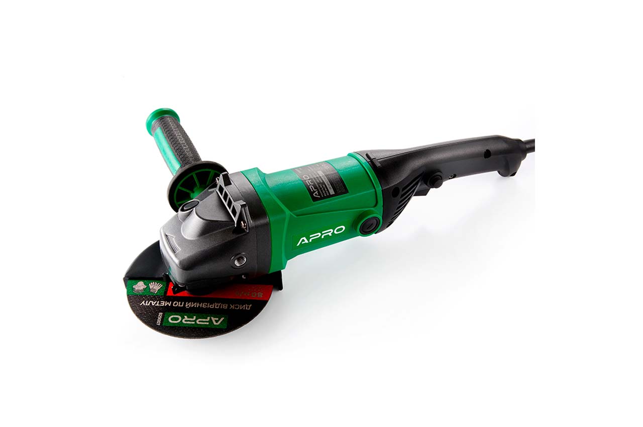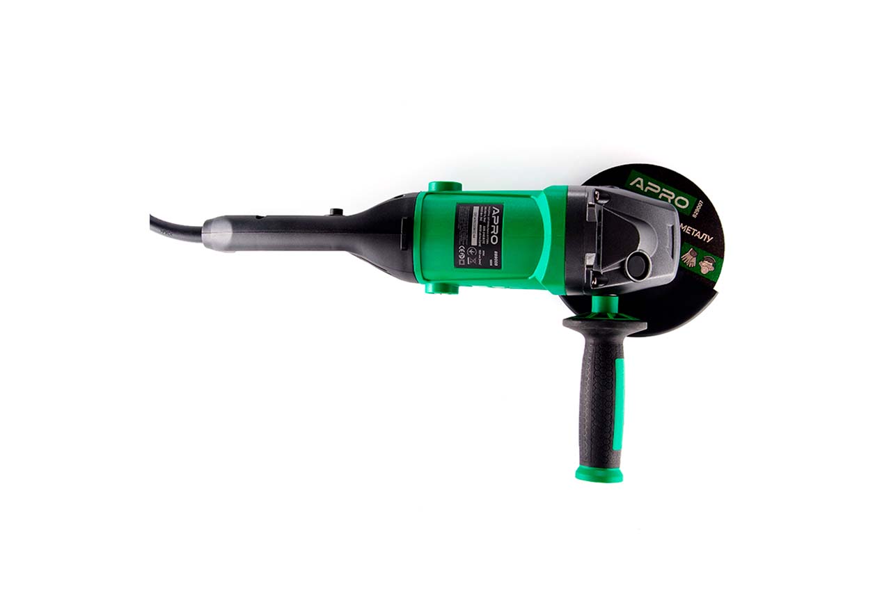 Шліфмашина кутова Apro - МШК 150 призначена для сухого чищення і різання металевих, цементних, гранітних або мармурових поверхонь, очищення металоконструкцій від корозії та зачистки зварних швів за допомогою зачисних або відрізних кругів (дисків) Ø 150 мм та товщиною до 6 мм. При використанні спеціальних насадок можливе застосування болгарки для очищення виробів від фарби.
