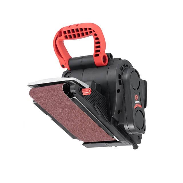 Шліфмашина WT-0529 працює зі стандартними шліфувальними стрічками, розмірами 76*457 мм різної зернистості. Завдяки стандартним розмірам шліфувальної стрічки у вас не виникне проблем з підбором необхідного витратного матеріалу. У цій моделі встановлений колекторний двигун з подвійною ізоляцією, номінальна потужність якого становить 800 Вт. Такої потужності буде достатньо для виконання будь-яких завдань. Шліфмашина має регулювання швидкості руху стрічки від 120-260 м/хв, що значно полегшить роботу при обробці різних видів матеріалів. Наявність кутового упору з алюмінієвим відкидним кожухом дозволяє обробляти деталі верхньою частиною стрічки при шліфуванні деяких площин, а також в кутках. Може використовуватися в стаціонарному, перевернутому положенні - для цього необхідні спеціальні струбцини.