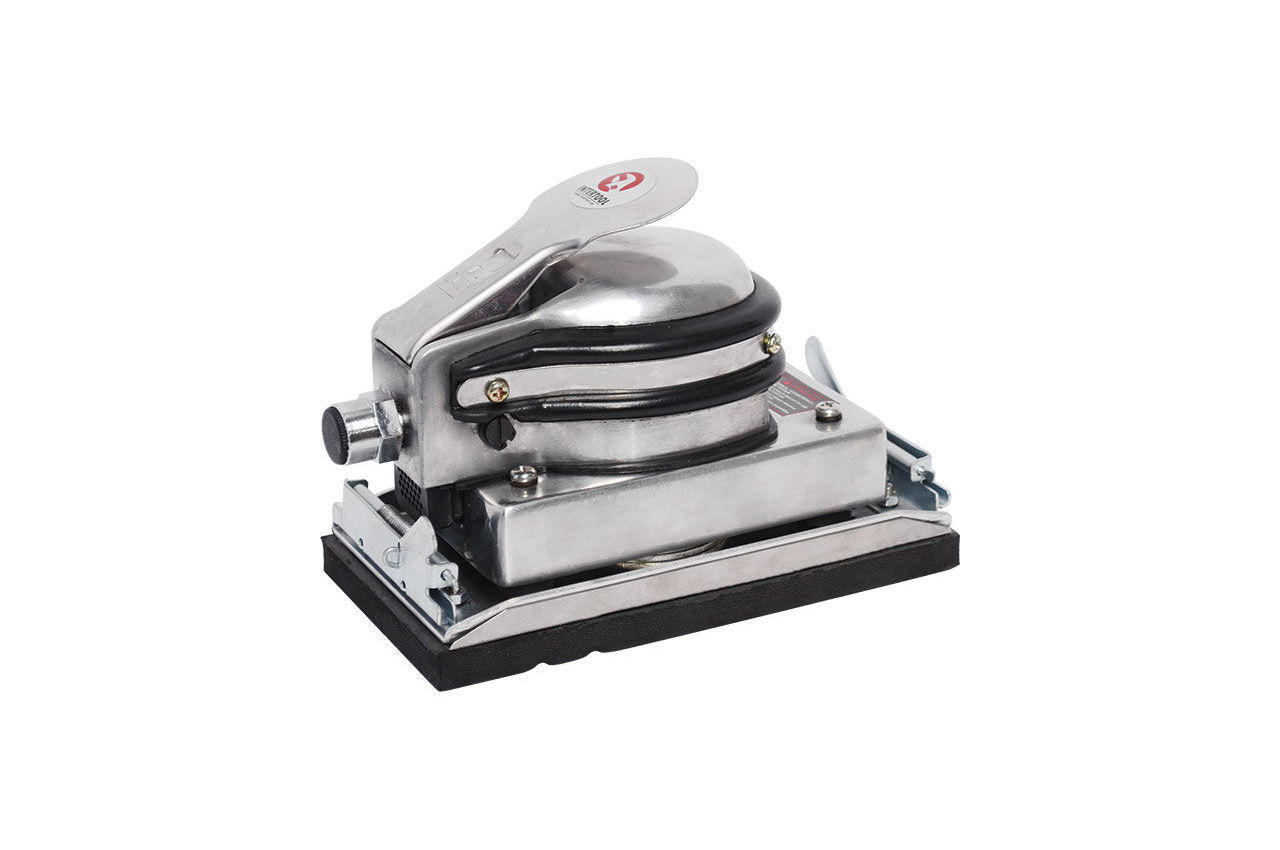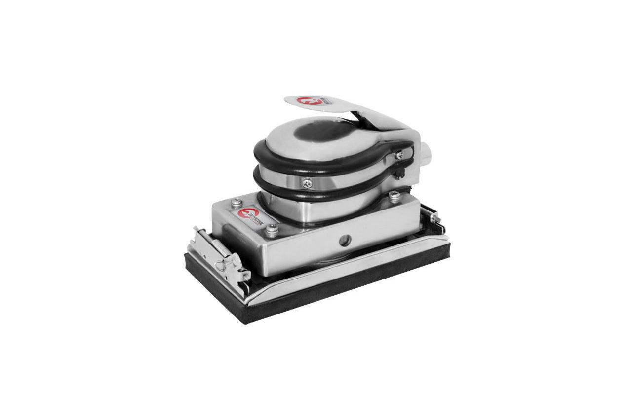 Шліфмашина пневматична вібраційна має шарикопідшипникову конструкцію, регульовану частоту вібрації платформи, можливість швидкої фіксації наждачного паперу, дросель заслінки для зупинки інструмента. Її ергономічний дизайн дозволяє зручно взяти інструмент в долоню. Це дає можливість працювати однією рукою. Такий інструмент як пневматична вібраційна шліфувальна машина може використовуватися для обробки дерева, скловолокна, металу, а також для обробки забарвлених і шпаклювали поверхонь. Робочий тиск: до 6 атм; Витрата повітря: 280 л / хв; Розмір платформи: 172x92 мм; Діаметр шланга: 8-10 мм