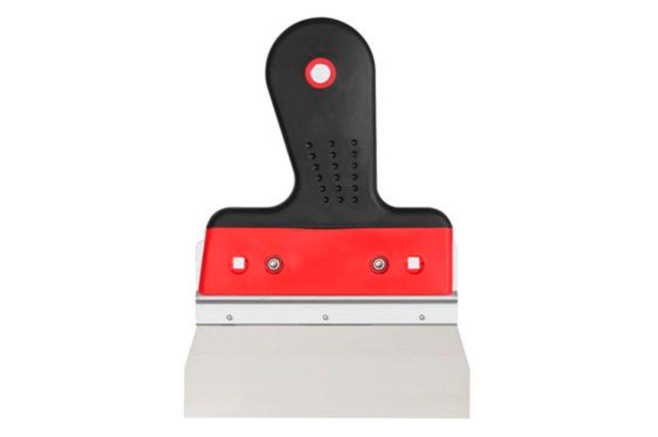 Фасадний шпатель призначений для нанесення та вирівнювання шпаклівок, штукатурних розчинів та інших будівельних матеріалів по поверхні. Шпатель виготовлений із високоякісних матеріалів. Полотно шпателя з нержавіючої сталі має алюмінієву вставку з ребром жорсткості, що підсилює конструкцію і дозволяє виконувати роботи на великих поверхнях. Рукоятка з пластику і направляюча з алюмінію роблять шпатель досить легким та зручним у використанні.