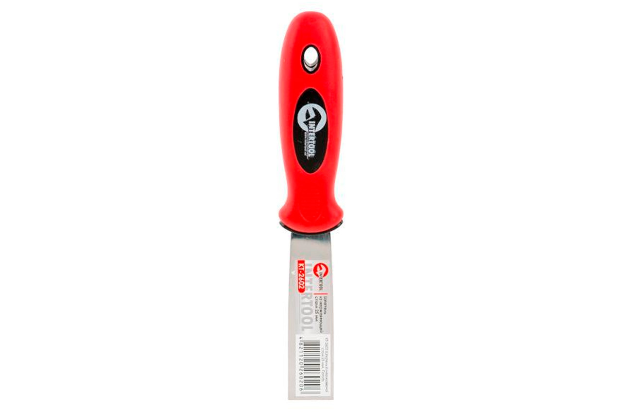 Професійний шпатель KT-2602 відмінно підійде для шпаклівки в важкодоступних місцях, вирівнювання невеликих поверхонь або нанесення шпаклівки на робочий шпатель. Він може бути використаний як для зовнішніх фасадних, так і внутрішніх ремонтно-оздоблювальних робіт. Двокомпонентна посилена ручка з гуми і пластика забезпечує надійне захоплення і комфортно лежить в руці під час експлуатації інструменту. Професійний шпатель KT-2602 виготовлений з високоякісної нержавіючої сталі, що робить його особливо міцним і довговічним, а також забезпечує просту мийку і чистку. Розмір зубів: без зубів; Ширина шпателя: 25 мм