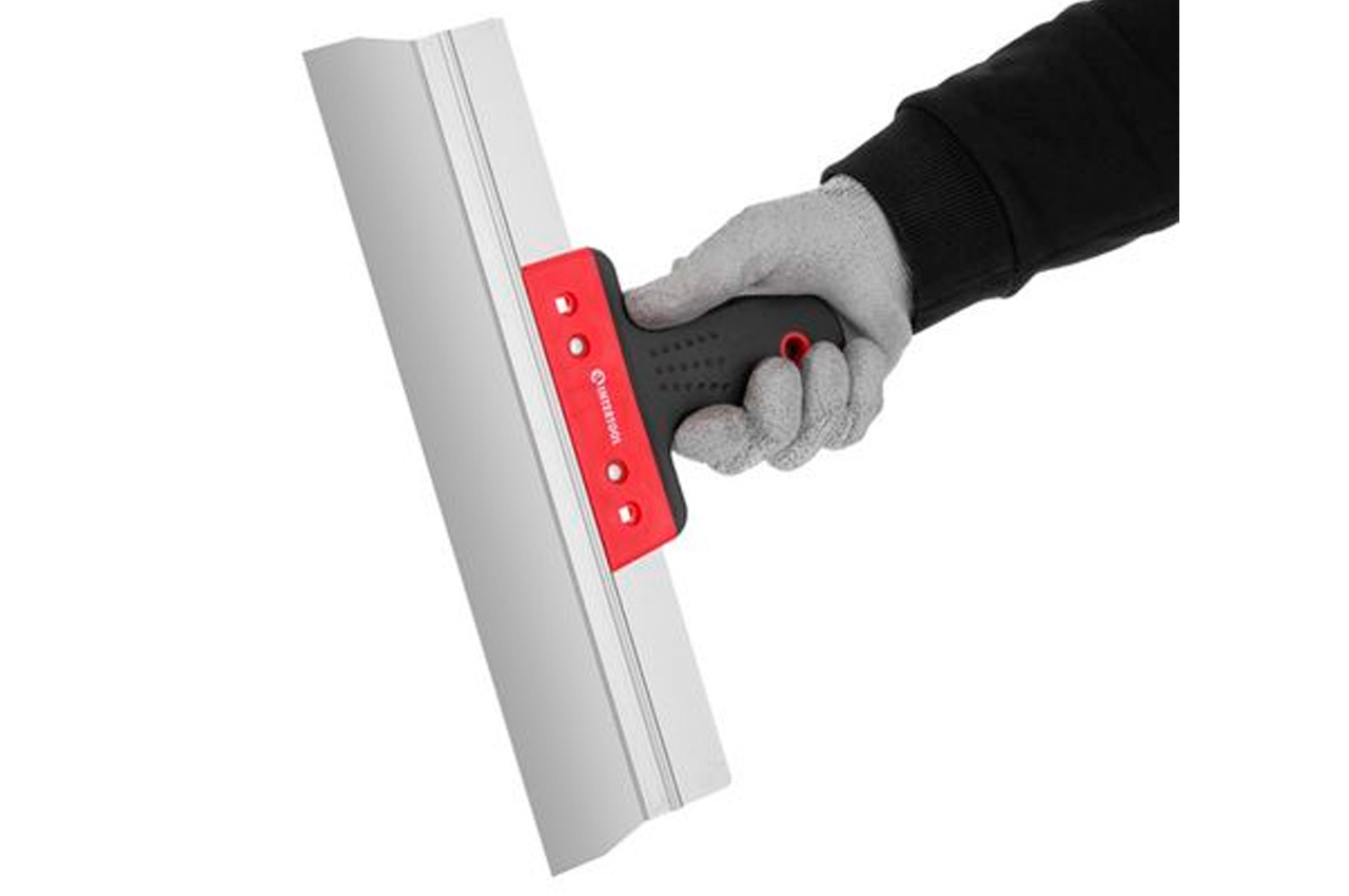 Фасадний шпатель призначений для нанесення та вирівнювання шпаклівок, штукатурних розчинів та інших будівельних матеріалів по поверхні. Шпатель виготовлений із високоякісних матеріалів. Полотно шпателя з нержавіючої сталі має алюмінієву вставку з ребром жорсткості, що підсилює конструкцію і дозволяє виконувати роботи на великих поверхнях. Рукоятка з пластику і направляюча з алюмінію роблять шпатель досить легким та зручним у використанні.
