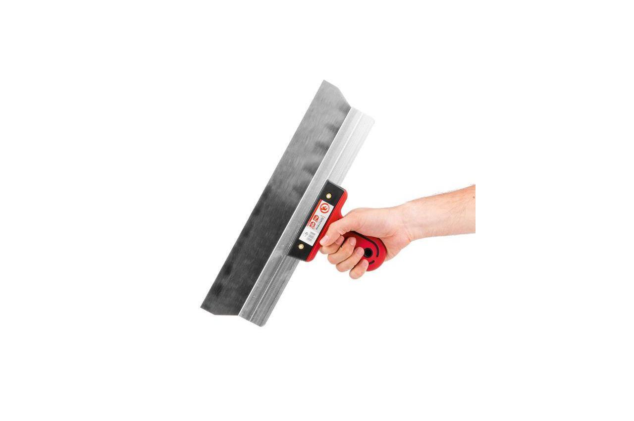 Шпатель професійної серії KT-2640 призначений для фасадних і внутрішніх обробно-ремонтних робіт. Полотно шпателя виконано з якісної нержавіючої сталі, яка гарантує надійність і довговічність інструменту, а також легко чиститься і миється. Шпатель володіє посиленою двухкомпонентной ручкою з гуми і пластика. Вона має ергономічну форму, комфортно лежить в руці і забезпечує надійне захоплення. Шпатель оснащений алюмінієвим профілем, який надає додаткову міцність конструкції і забезпечує рівність полотна під час проведення робіт. Розмір зубів: без зубів; Ширина шпателя: 400 мм