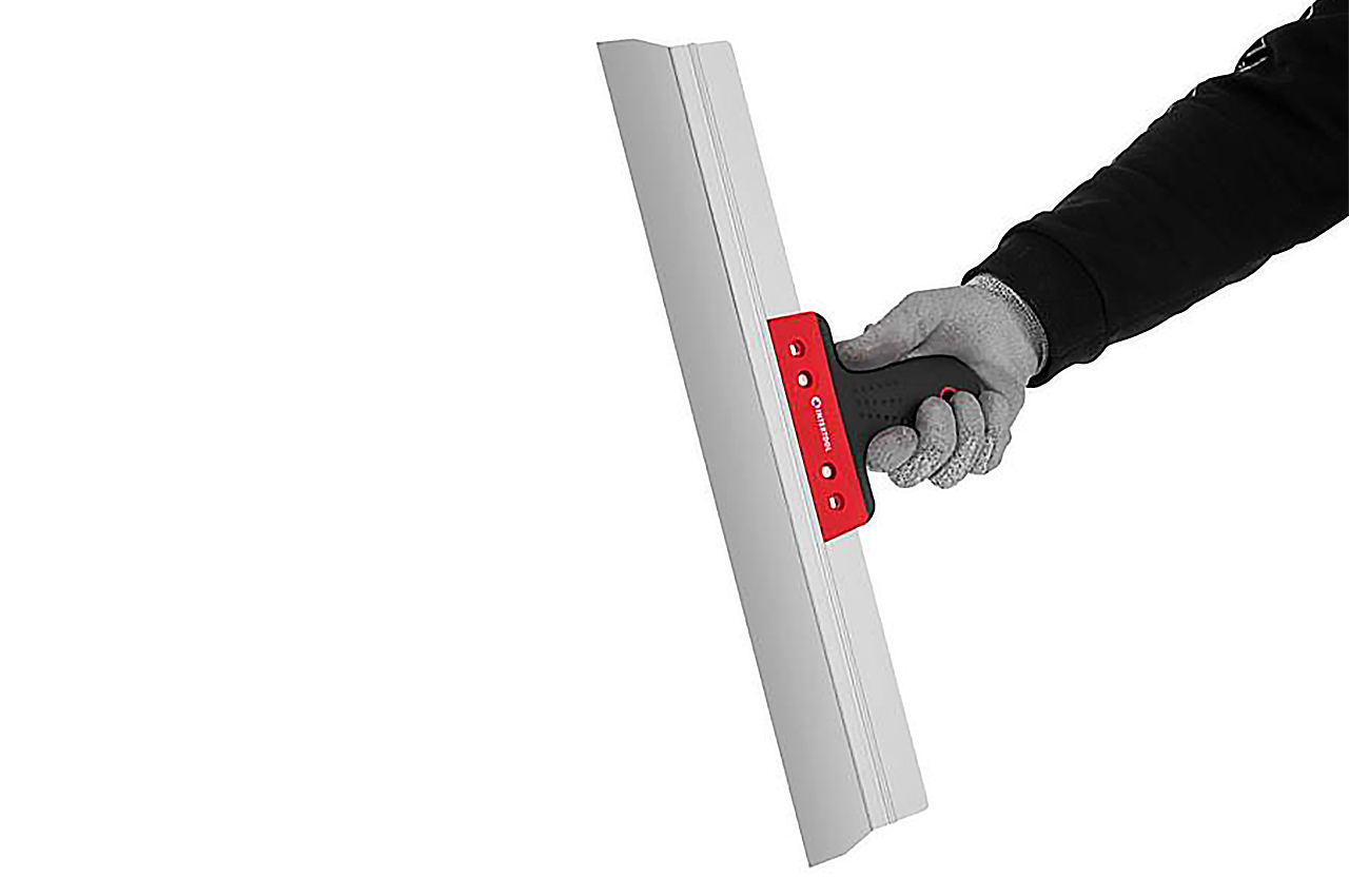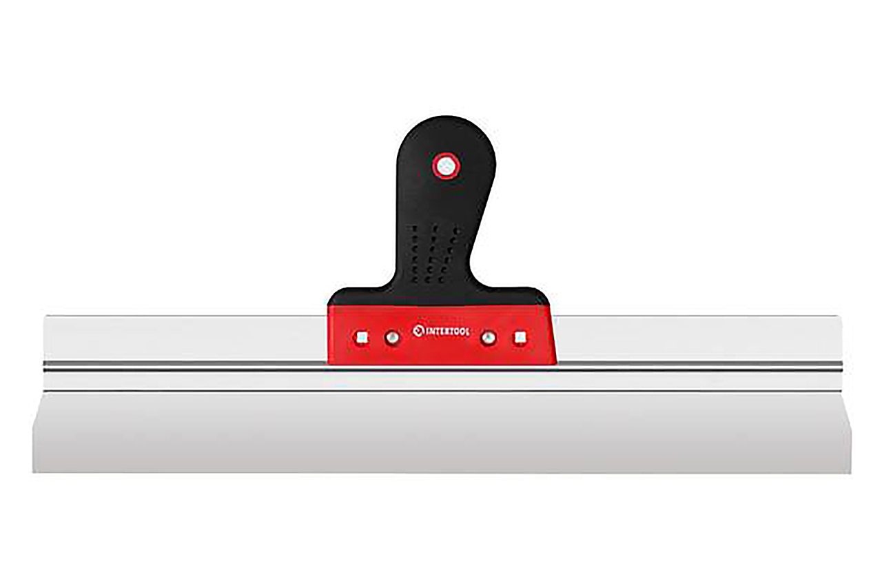 Фасадний шпатель призначений для нанесення та вирівнювання шпаклівок, штукатурних розчинів та інших будівельних матеріалів по поверхні. Шпатель виготовлений із високоякісних матеріалів. Полотно шпателя з нержавіючої сталі має алюмінієву вставку з ребром жорсткості, що підсилює конструкцію і дозволяє виконувати роботи на великих поверхнях. Рукоятка з пластику і направляюча з алюмінію роблять шпатель досить легким та зручним у використанні.