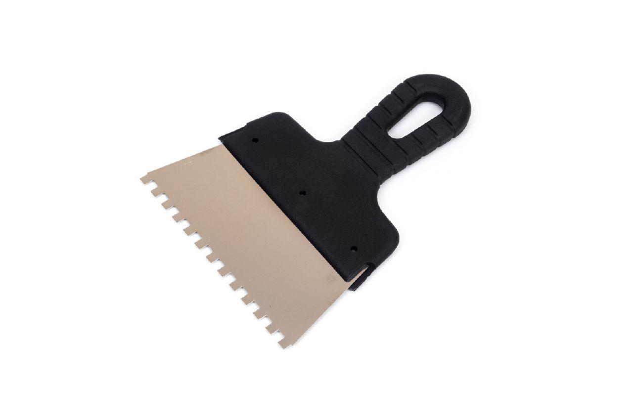 Затирка з оцинкованої сталі з квадратним зубом 6х6 мм. Ергономічна пластикова ручка надійно закріплена біля основи полотна. Призначена для рівномірного нанесення і розподілу різних будівельних сумішей по поверхні.