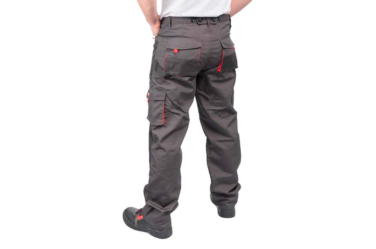 Робочі штани темно-сірого кольору виготовлені з міцної тканини: 80% поліестер та 20% бавовна з щільністю 260 г / м². Наявність безлічі кишень дозволяє розвантажити руки і забезпечує швидкий доступ для підручного інструменту. Продуманий крій для комфортної роботи Блискавка з вітрозахисним клапаном Накладки з чорної тканини для вставки наколінників забезпечують зручність в роботі на твердих поверхнях Широкі петлі для ременя