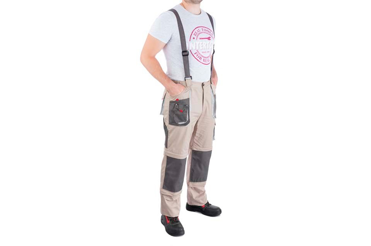 Багатофункціональні брюки бежевого кольору мають унікальну конструкцію, завдяки чому можуть трансформуватися в напівкомбінезон, брюки, бриджі, шорти з лямками і без них. Така універсальність моделі дозволяє носити їх як влітку, так і в інші сезони. Виготовлені штани з 100% бавовни, пропускають повітря і приємні до тіла. Щільність тканини становить 180 г / м², відмінно захищає від різних механічних пошкоджень. Трансформуються в шорти, бриджі, брюки і напівкомбінезон з лямками і без них 9 функціональних кишень для зберігання інструменту і особистих речей. Два основних кишені посилені додатково тканиною проти зносу Комфортний, легкий матеріал виготовлення Регульовані лямки з вставкою з еластичної резинки для налаштування необхідного розміру Посилені шви підвищують міцність виробу Вставки під наколінники з чорної міцної тканини