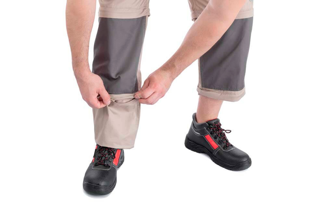Багатофункціональні брюки бежевого кольору мають унікальну конструкцію, завдяки чому можуть трансформуватися в напівкомбінезон, брюки, бриджі, шорти з лямками і без них. Така універсальність моделі дозволяє носити їх як влітку, так і в інші сезони. Виготовлені штани з 100% бавовни, пропускають повітря і приємні до тіла. Щільність тканини становить 180 г / м², відмінно захищає від різних механічних пошкоджень. Трансформуються в шорти, бриджі, брюки і напівкомбінезон з лямками і без них 9 функціональних кишень для зберігання інструменту і особистих речей. Два основних кишені посилені додатково тканиною проти зносу Комфортний, легкий матеріал виготовлення Регульовані лямки з вставкою з еластичної резинки для налаштування необхідного розміру Посилені шви підвищують міцність виробу Вставки під наколінники з чорної міцної тканини