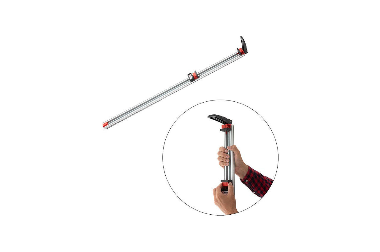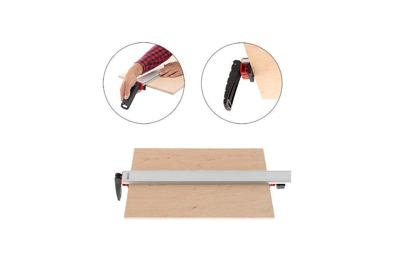 Часто в роботі виникає необхідність зробити правильний рівний рез. Використання струбцин і додаткових пристосувань не дуже зручно, до того ж саморобні напрямні можуть в будь-якому момент з'їхати в бік і зіпсувати матеріал. В цьому випадку не обійтися без такого корисного інструменту, як напрямна шина. Дозволяє отримати якісно і точно оброблену заготовку, також полегшує роботу і гарантує безпечний процес розпилу, шліфування, фрезерування та ін. Універсальна напрямна шина HT-6070 виготовлена з міцного алюмінієвого профілю, що повністю виключає можливі деформації. З її допомогою ви легко зробите поздовжні, поперечні розпили з високою точністю, а також зможете зробити комплексну обробку і торцювання декількох заготовок. Шина допоможе заощадити ваш час і уникнути псування матеріалу, кривих зрізів, відколів. Використовується спільно з електричними лобзиками, механічними пилами для дерева, а також будь-якими дисковими пилами і фрезерують. Особливості: Надміцна конструкція з алюмінієвого профілю для довгострокової служби. Сталева тяга і упор направляючої шини створюють зусилля стиснення до 100 кг для надійної фіксації матеріалів. Широка ручка з інженерного пластика для зручної роботи. Рухома каретка дозволяє відрегулювати необхідний розмір під оброблюваний матеріал. Рельєфні гумові накладки на притискних губках забезпечують міцне зчеплення з заготівлею. Гладка алюмінієва поверхня для плавного ковзання по направляючої. Робоча довжина: 900 мм; Габаритні розміри: 1070 * 55 * 20 мм Надміцна конструкція з алюмінієвого профілю для довгострокової служби. Сталева тяга і упор направляючої шини створюють зусилля стиснення до 100 кг для надійної фіксації матеріалів. Широка ручка з інженерного пластика для зручної роботи. Рухома каретка дозволяє відрегулювати необхідний розмір під оброблюваний матеріал. Рельєфні гумові накладки на притискних губках забезпечують міцне зчеплення з заготівлею. Гладка алюмінієва поверхня для плавного ковзання по направляючої. Робоча довжина: 900 мм; Габаритні розміри: 1070 * 55 * 20 мм Надміцна конструкція з алюмінієвого профілю для довгострокової служби. Сталева тяга і упор направляючої шини створюють зусилля стиснення до 100 кг для надійної фіксації матеріалів. Широка ручка з інженерного пластика для зручної роботи. Рухома каретка дозволяє відрегулювати необхідний розмір під оброблюваний матеріал. Рельєфні гумові накладки на притискних губках забезпечують міцне зчеплення з заготівлею. Гладка алюмінієва поверхня для плавного ковзання по направляючої. Робоча довжина: 900 мм; Габаритні розміри: 1070 * 55 * 20 мм Рельєфні гумові накладки на притискних губках забезпечують міцне зчеплення з заготівлею. Гладка алюмінієва поверхня для плавного ковзання по направляючої. Робоча довжина: 900 мм; Габаритні розміри: 1070 * 55 * 20 мм Рельєфні гумові накладки на притискних губках забезпечують міцне зчеплення з заготівлею. Гладка алюмінієва поверхня для плавного ковзання по направляючої. Робоча довжина: 900 мм; Габаритні розміри: 1070 * 55 * 20 мм