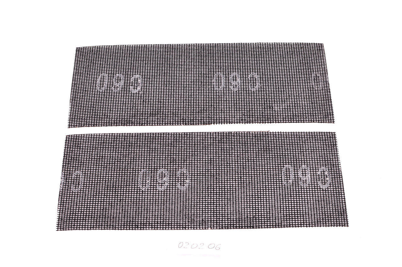 Призначена для роботи з ручною шліфуванням разом з гіпсовим бруском або зі спеціальними шліфмашінкой. Використовується для зачистки і матовка великих обсягів забарвлених або загрунтованих поверхонь. Абразивний матеріал завдано по обидва боки, що подовжує довговічність сітки. Зручна у використанні, оскільки видаляються частинки не забивають абразив, а проходять через отвори сітки. Підходить для фінішного шліфування поверхні. Має розмір 107 x 280 мм. В упаковці 10 шт.