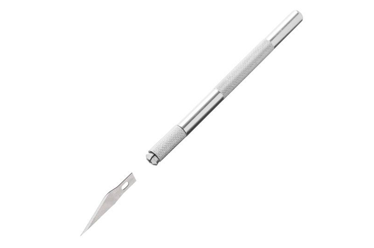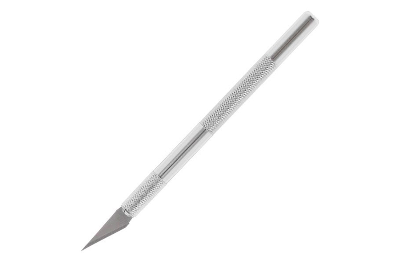 Макетний ніж (скальпель) стане відмінним помічником в роботі з папером, картоном, деревиною, пластмасами, гумою, текстилем, шкірою та ін. Завдяки високому класу якості виготовлення забезпечується акуратне, точне різання. Корпус ножа виготовлений з алюмінію, що надає інструменту особливої легкості в роботі. Лезо з дуже тонкою заточкою має хірургічну точність. Корпус скальпеля виконаний у вигляді кулькової ручки з насічками в місці хвату, що робить інструмент зручним і зменшує ковзання в руці. Лезо знімне і кріпиться за допомогою цангового затиску з отвором, роблячи інструмент багаторазовим.