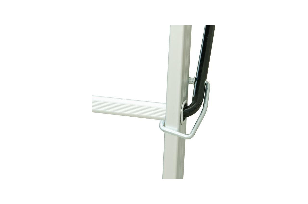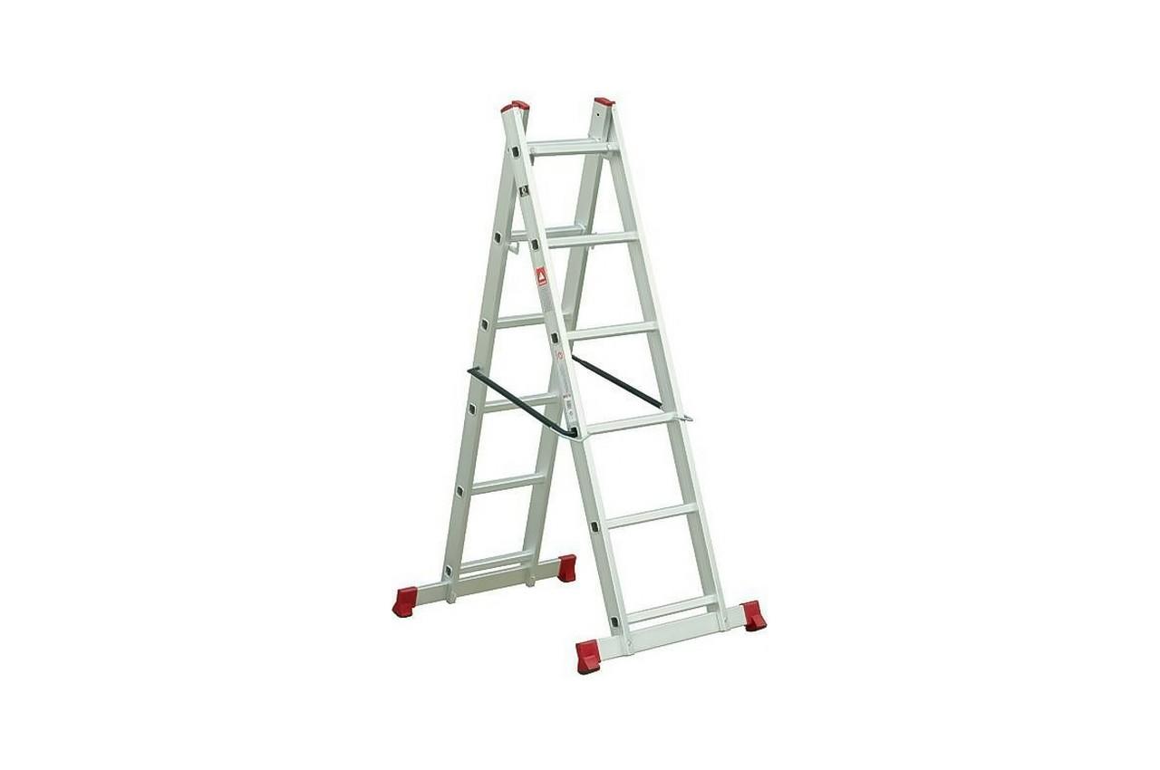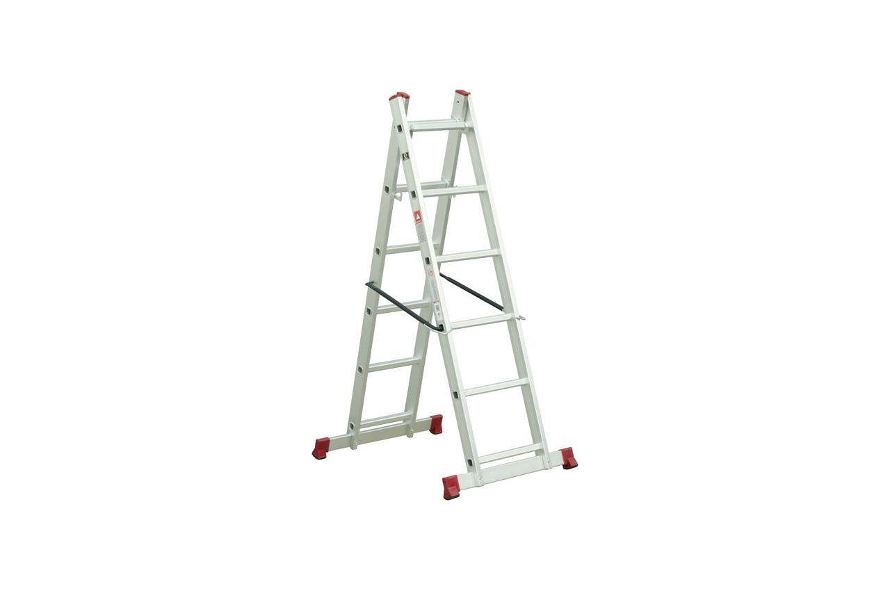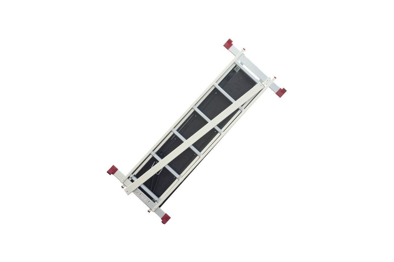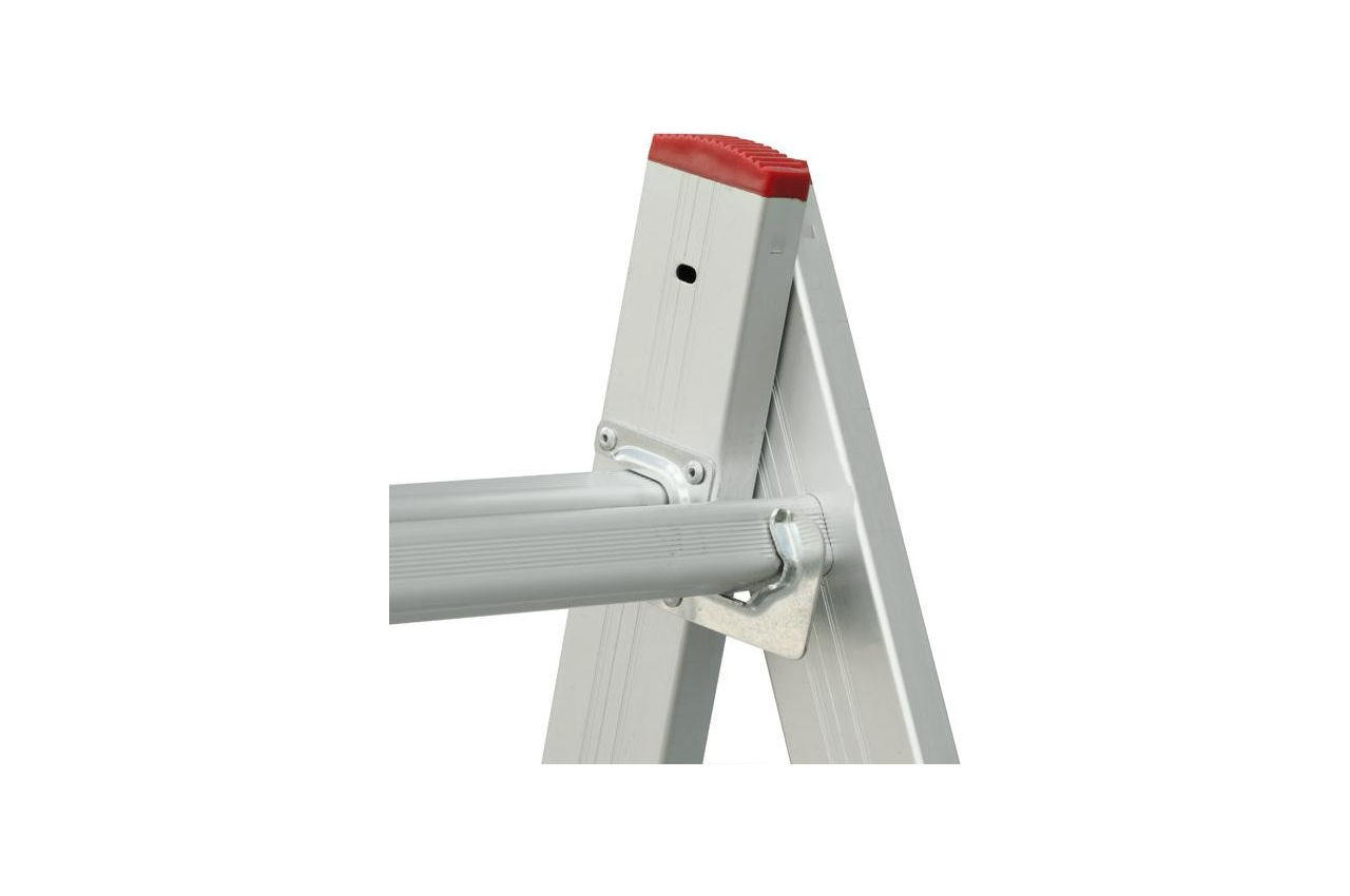 Сходи-поміст має надійну, при цьому легку конструкцію з алюмінію. Працювати на ній безпечно і зручно, оскільки має широкий майданчик (147 х 41 см), покриту антиковзаючим покриттям, яка фіксується на двох стійких приставних сходах, по 6 ступенів. На такому майданчику можна вільно пересуватися, а також використовувати як підставку для різних інструментів і підручних речей, які знадобляться Вам на висоті. Відрізняється своєю універсальністю. В ході невигадливих трансформацій, Ви отримуєте: Дві односекційні приставні сходи (L = 1,67 м). Одну двосекційну приставні сходи (L = 2,72 м). Двосторонню драбину (L = 1,6 м). Невеликі будівельні ліси з різною висотою помосту. Максимальне навантаження: 150 кг