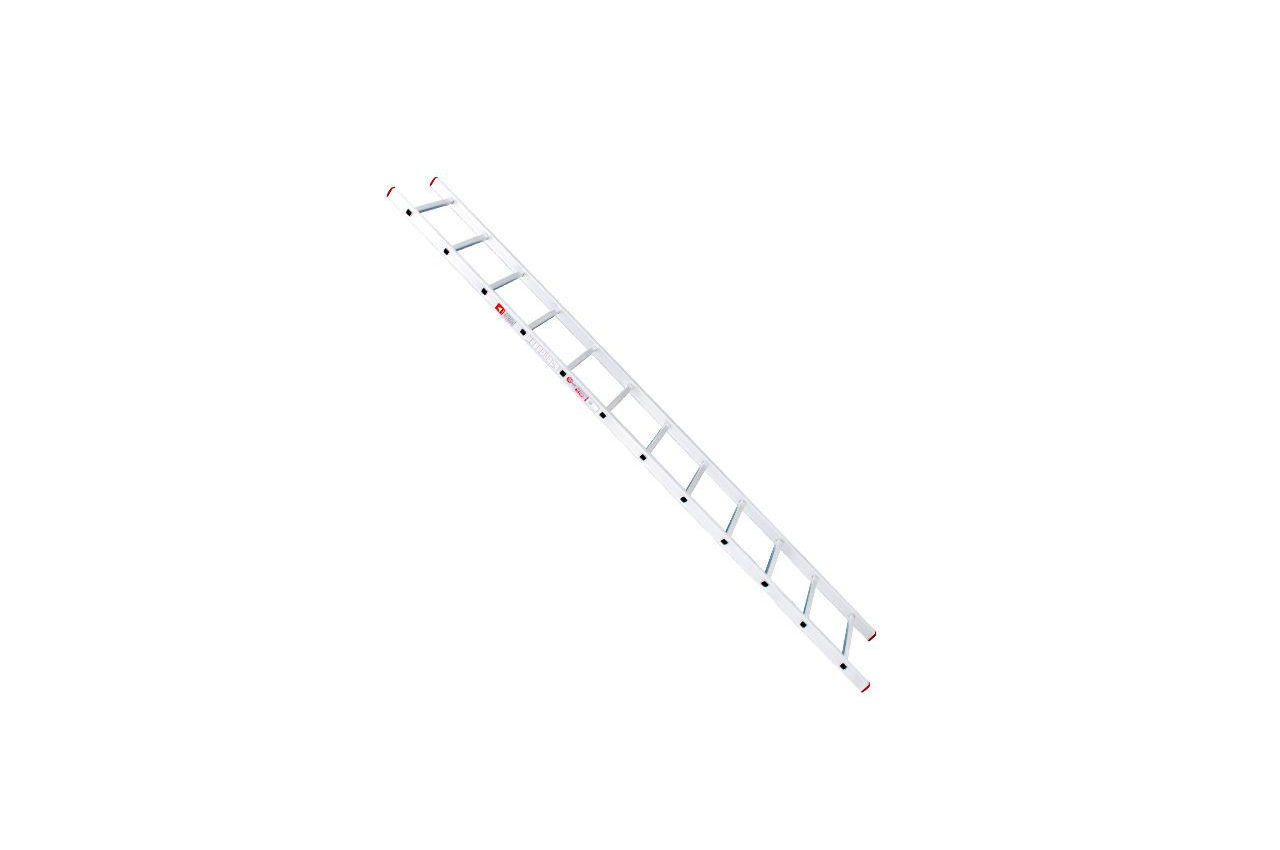 Сходи приставні виготовлена з високоякісного екструдованого алюмінієвого профілю. Вага - 5 кг, висота - 3400 мм. Оснащена 12 нековзними рифленими ступенями шириною 280 мм. Змінні пластикові вставки в основі стійок запобігають ковзанню по опорній поверхні. Ширина сходів: 380 мм; Кількість ступенів: 12 од .; Ширина ступені: 280 мм; Максимальне навантаження: 150 кг