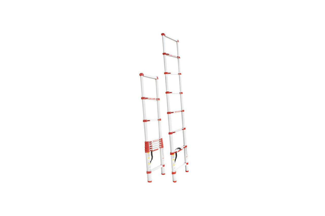 Драбина алюмінієва телескопічна оснащена 8 нековзними рифленими ступенями шириною 300 мм, а також надійно закріпленими замками-фіксаторами. Протиковзкі опорні заглушки перешкоджають небажаному ковзанню драбини. Висота драбини в розкладеному вигляді 2600 мм, витримує навантаження до 150 кг. У складеному вигляді висота становить 675 мм. Є ручка для перенесення. Висота в складеному вигляді: 675 мм; Кількість ступенів: 8 од .; Ширина ступені: 300 мм; Максимальне навантаження: 150 кг