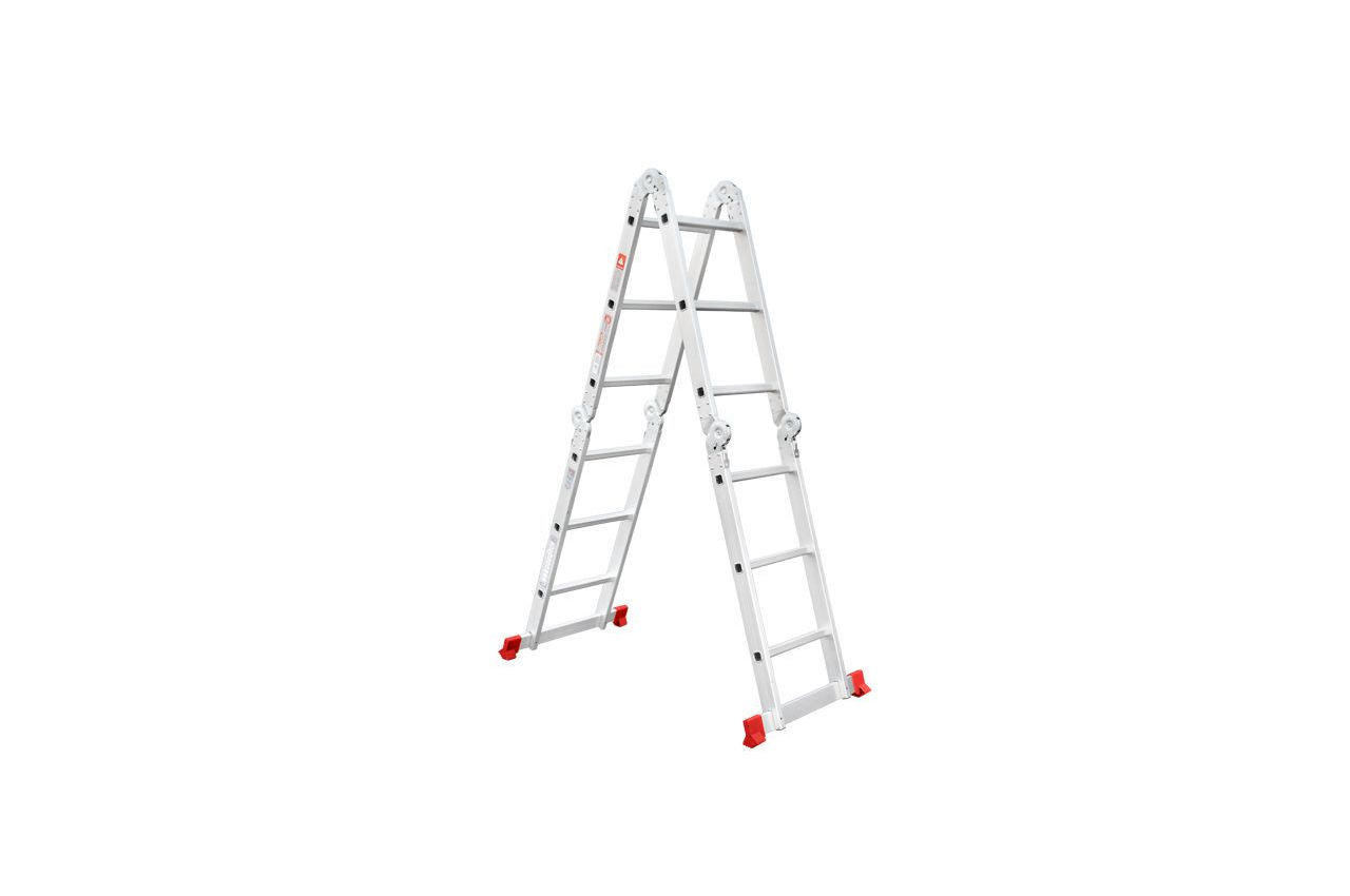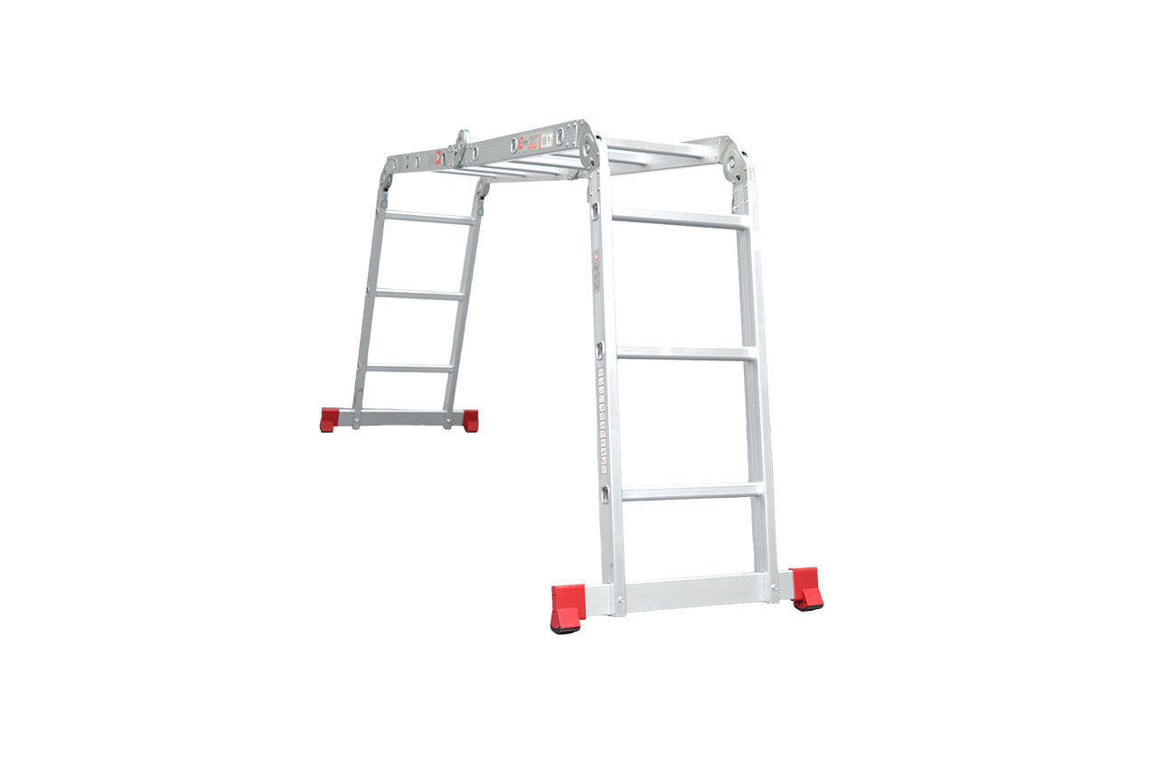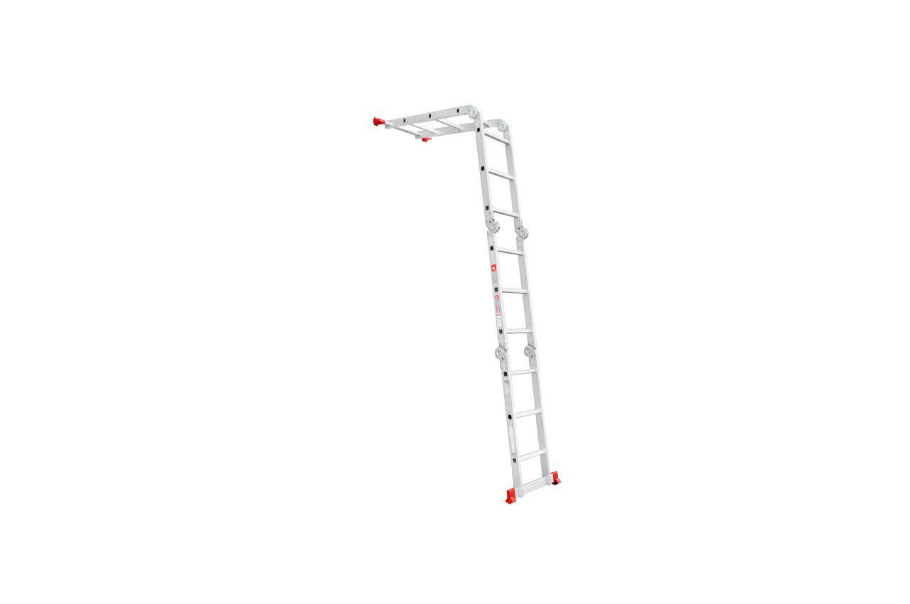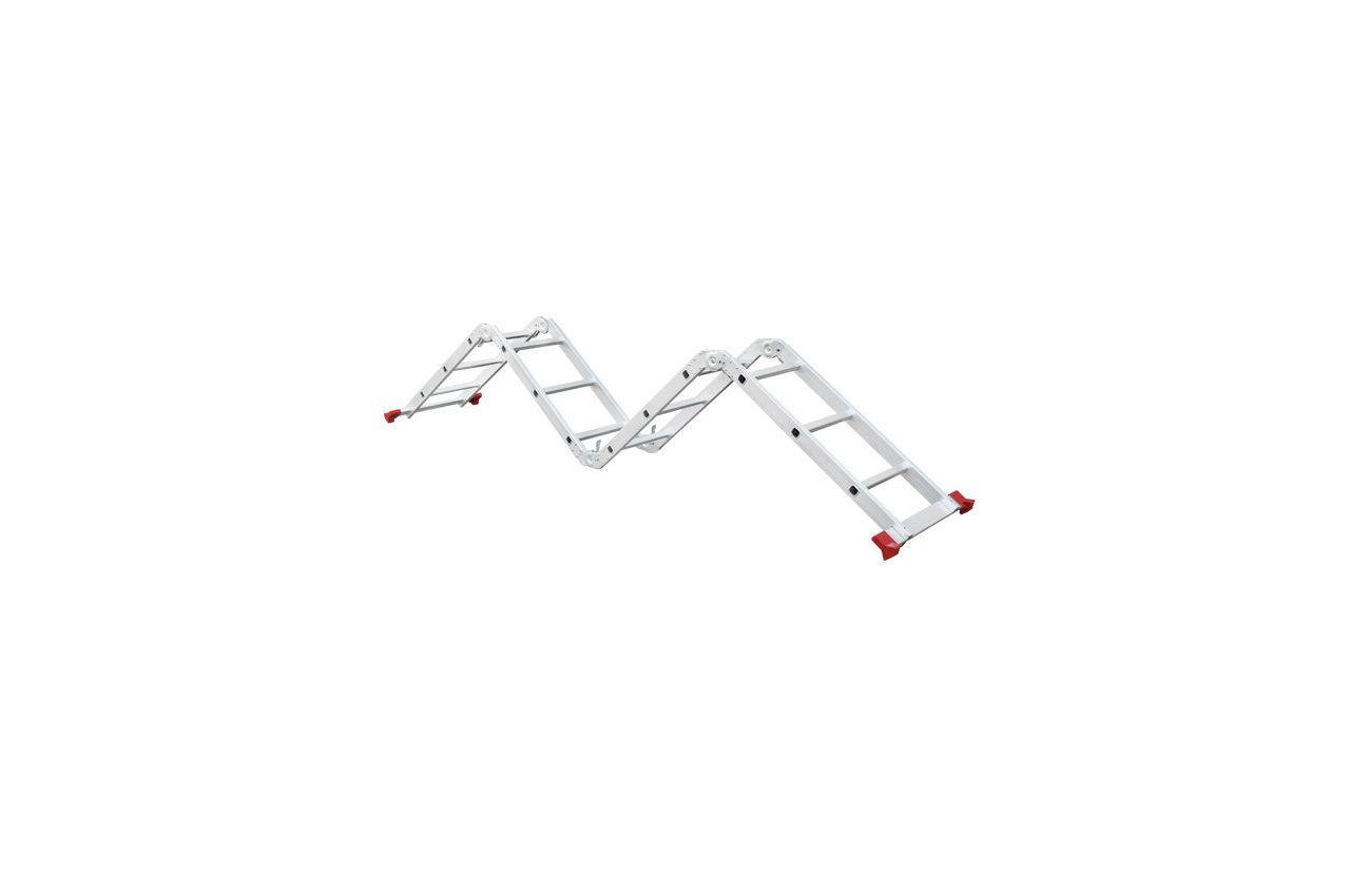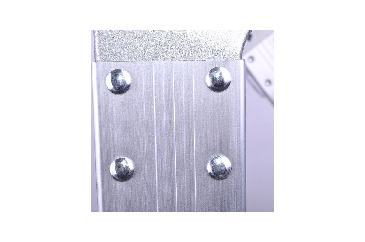 Сходи виготовлена з високоміцного екструдованого алюмінієвого профілю. Це забезпечує високу жорсткість конструкції, а також здатність витримати навантаження до 150 кг. Щоб уникнути ковзання, сходи укомплектовані надійними еластичними пластиковими підошвами. Сходи мають міцні рифлені щаблі, які не дадуть нозі зісковзнути. Висота в складеному вигляді: 1030 мм; Ширина сходів: 370 мм; Кількість ступенів: 4x3 од .; Максимальне навантаження: 150 кг