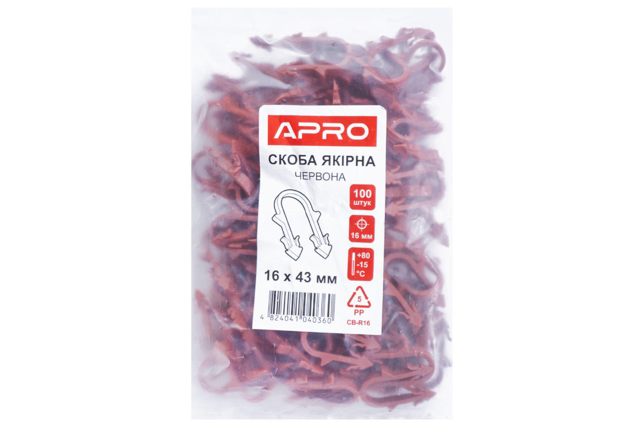 Скоба якірна Apro - 16 x 43 мм червона (100 шт.)