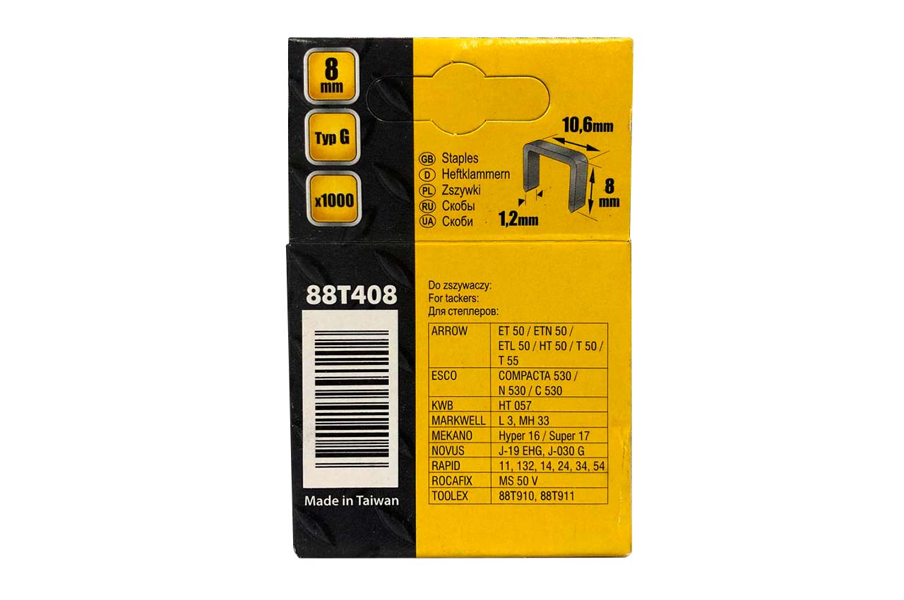 Скоба Toolex - 8 x 1,2 x 10,6мм широка (1000шт)