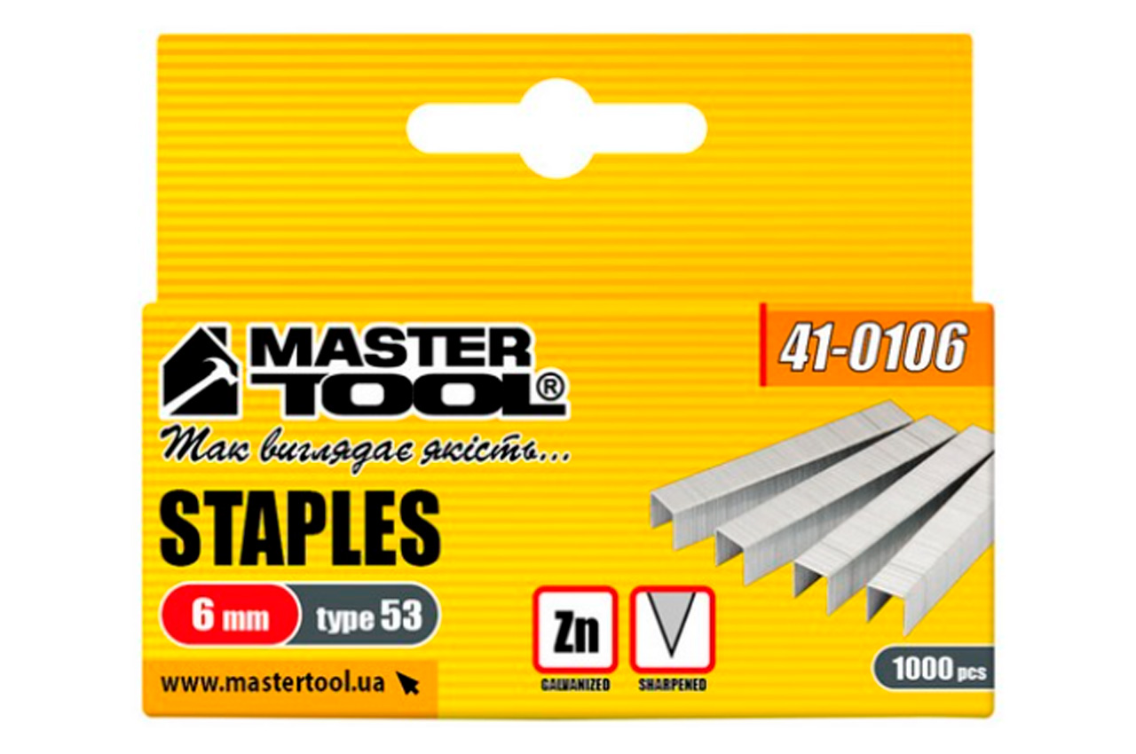 Скоба Титул призначена для м'яких порід порід дерева, ДВП, гіпсокартону і т.п. Висота скоби: 6 мм, ширина скоби: 11,3 мм, перетин скоби: 0,7 мм. В упаковці 1000 шт.