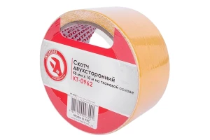 Скотч двосторонній на поліпропіленовій основі призначений для склеювання пластикових, картонних, гумових, дерев'яних, скляних і інших деталей з гладкими поверхнями. Підходить для монтажних і декоративних робіт всередині і зовні приміщення.