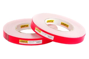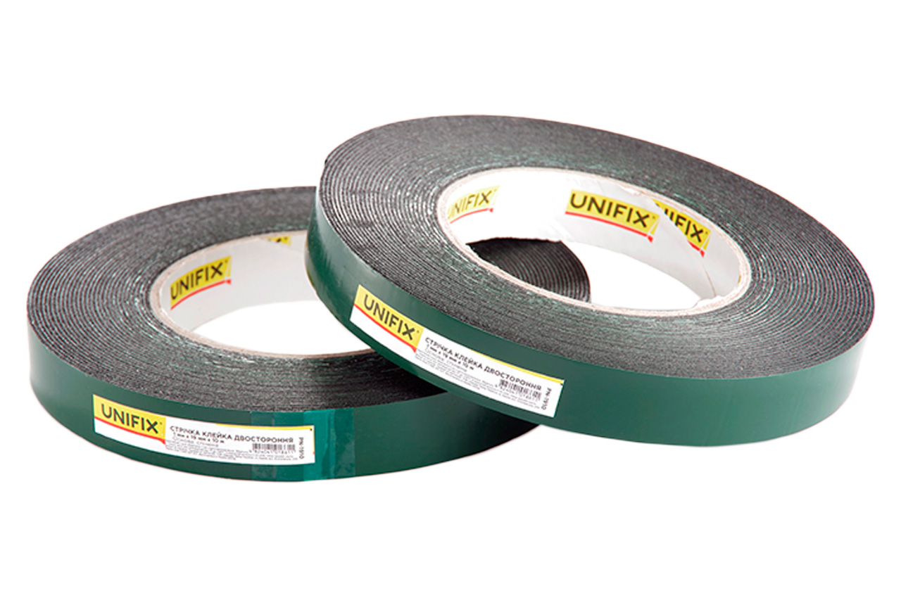 Спінена клейка стрічка (скотч) Unifix шириною 19 мм - дозволяє моментально приклеювати практично будь-які об'єкти на будь-які поверхні в приміщенні. Широко використовується в будівництві та ремонті. Стрічка чудово компенсує дрібні щілини, нерівності та похибки між поверхнями, що слеюються - незамінна для з'єднання поверхонь з нещільним приляганням: шорсткі поверхні, довгі деталі з похибкою прилягання (плінтуса, профілі, панелі, накладки тощо).