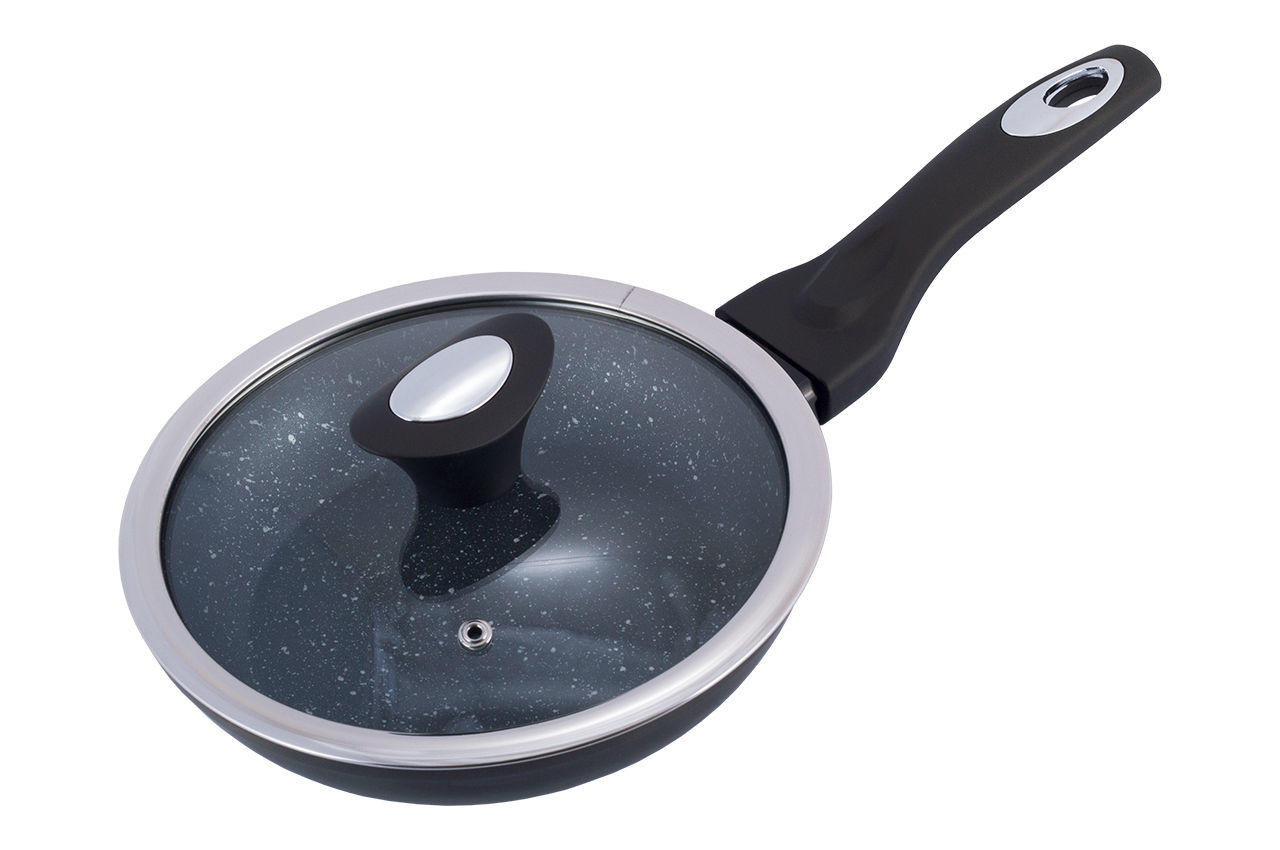 Сковорода антипригарна Kamille - 200 мм Black Marble з кришкою