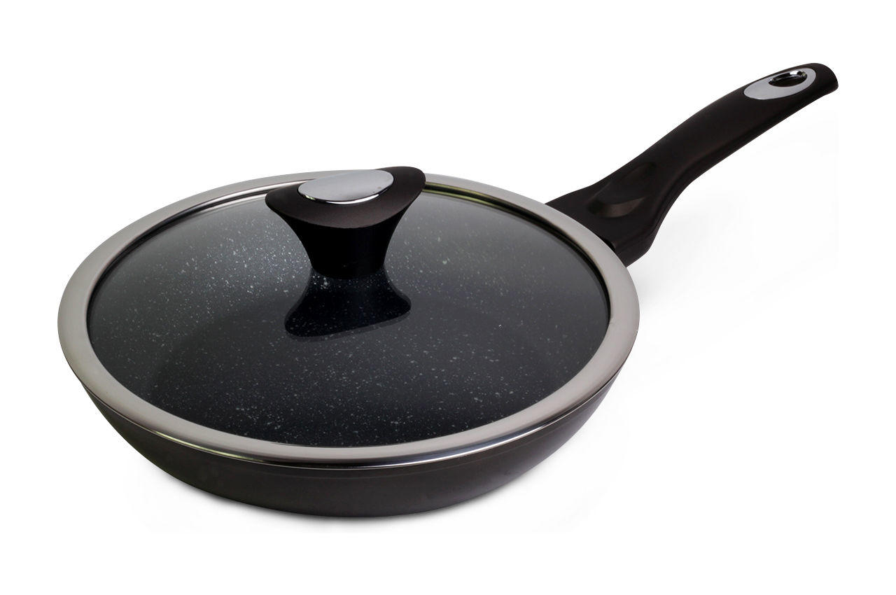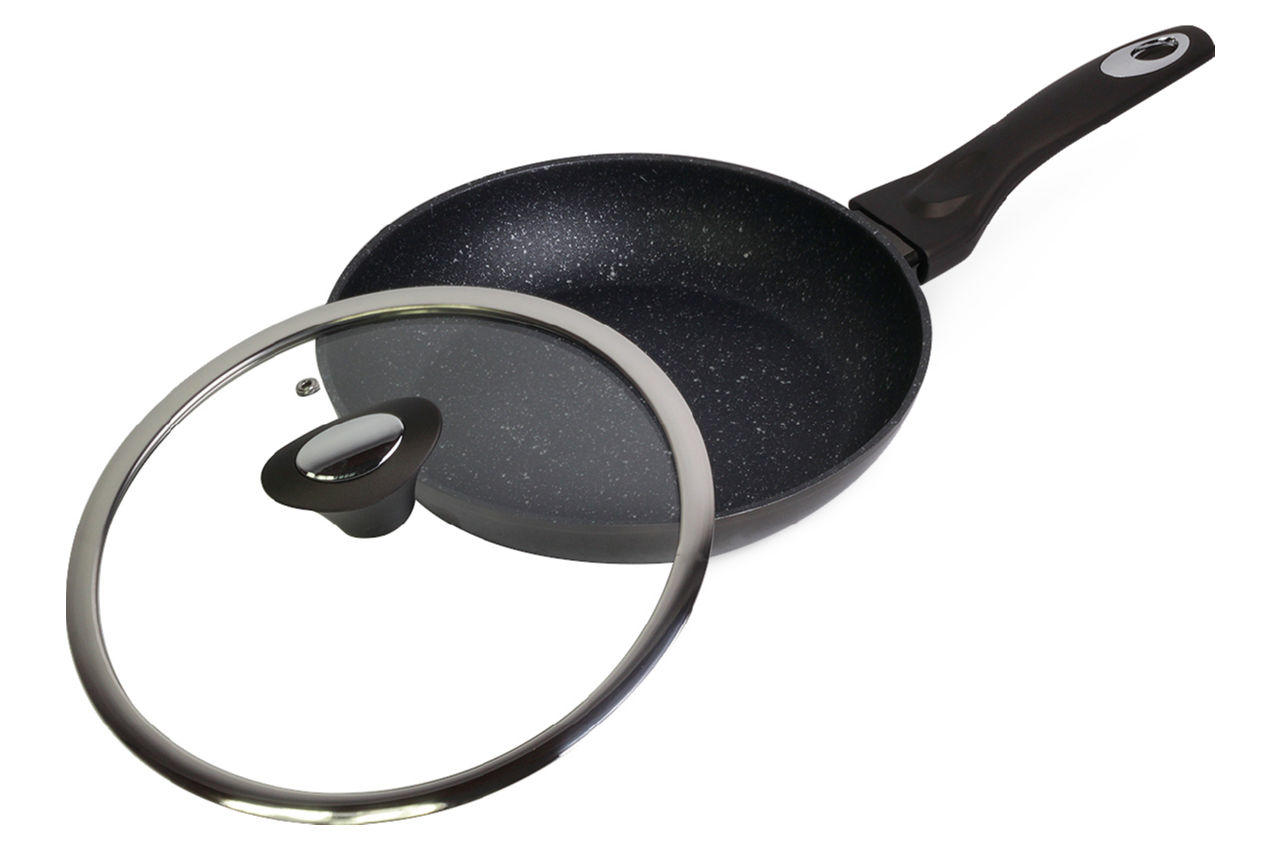Сковорода антипригарна Kamille - 240 мм Black Marble з кришкою