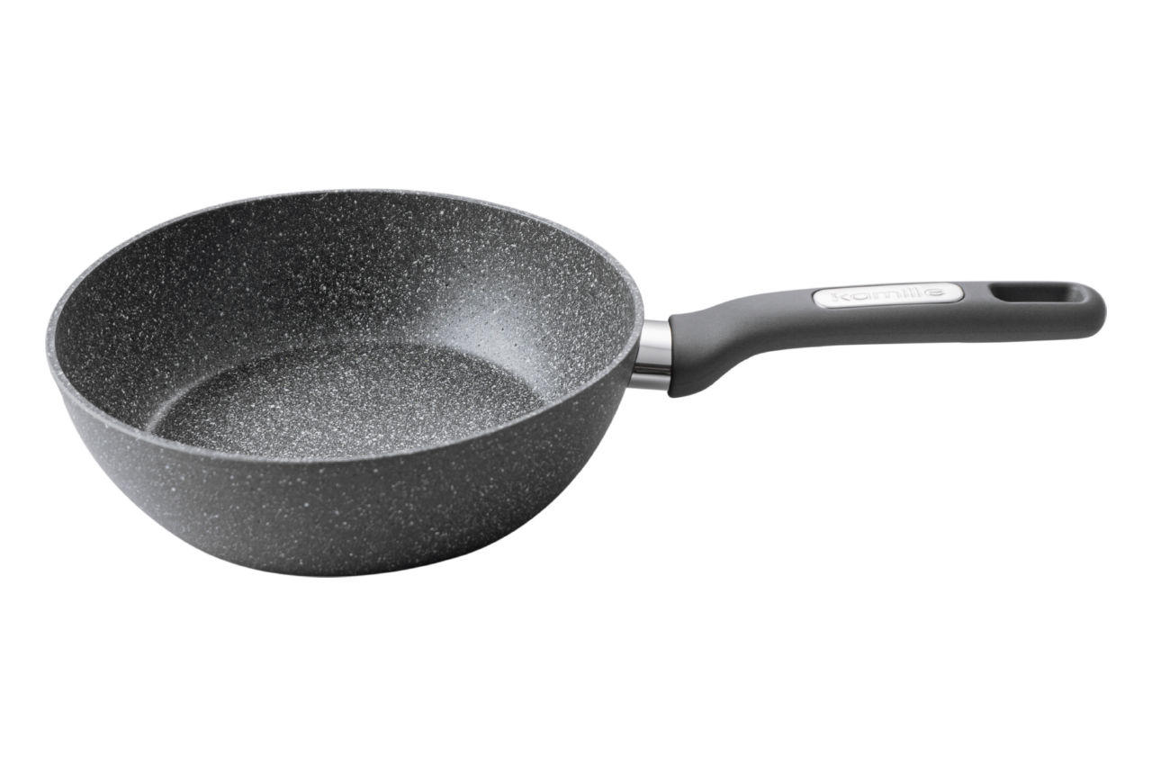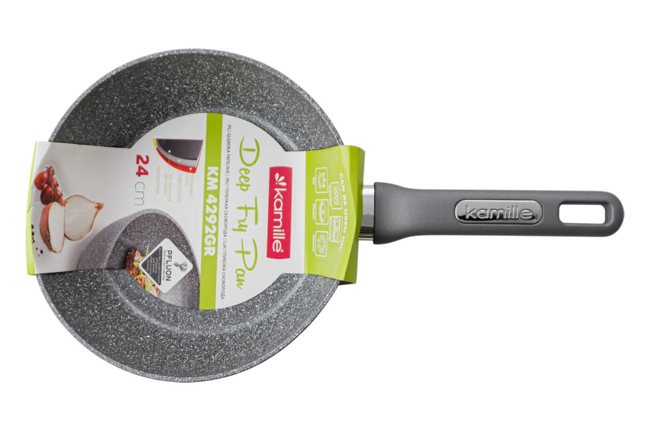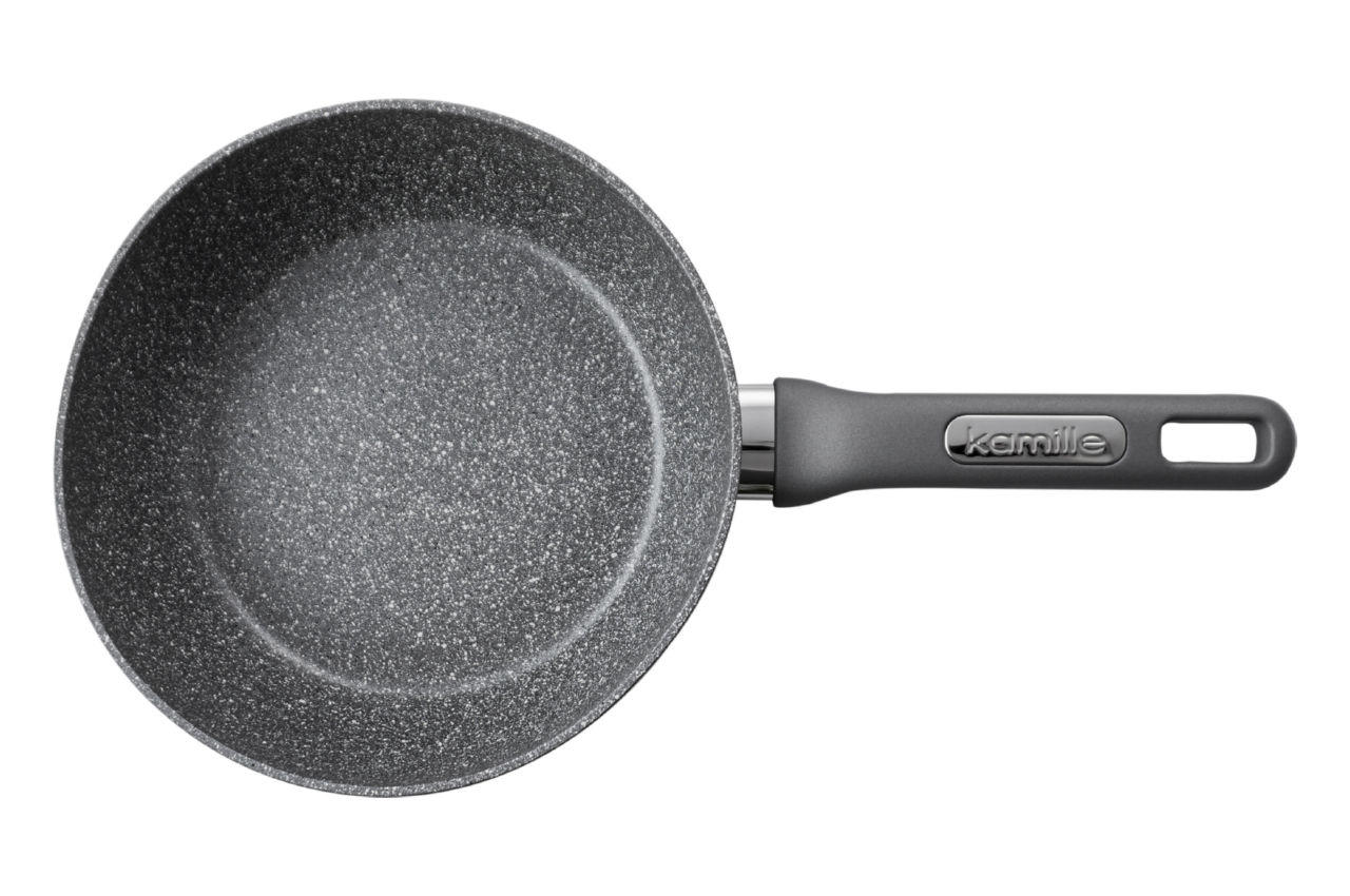Сковорода антипригарна Kamille - 240 мм Grey Marble глибока. Завдяки міцному гранітного покриття, така сковорода стійка до механічних впливів, за рахунок чого значно збільшується термін її служби. Сотейник нагрівається рівномірно, не створюючи перегрітих ділянок і холодних країв, навіть у тих випадках, коли процес приготування їжі йде на невеликому вогні. У результаті скорочується час приготування страви і зменшується ризик є суміш недосмажене або пережареної їжі.