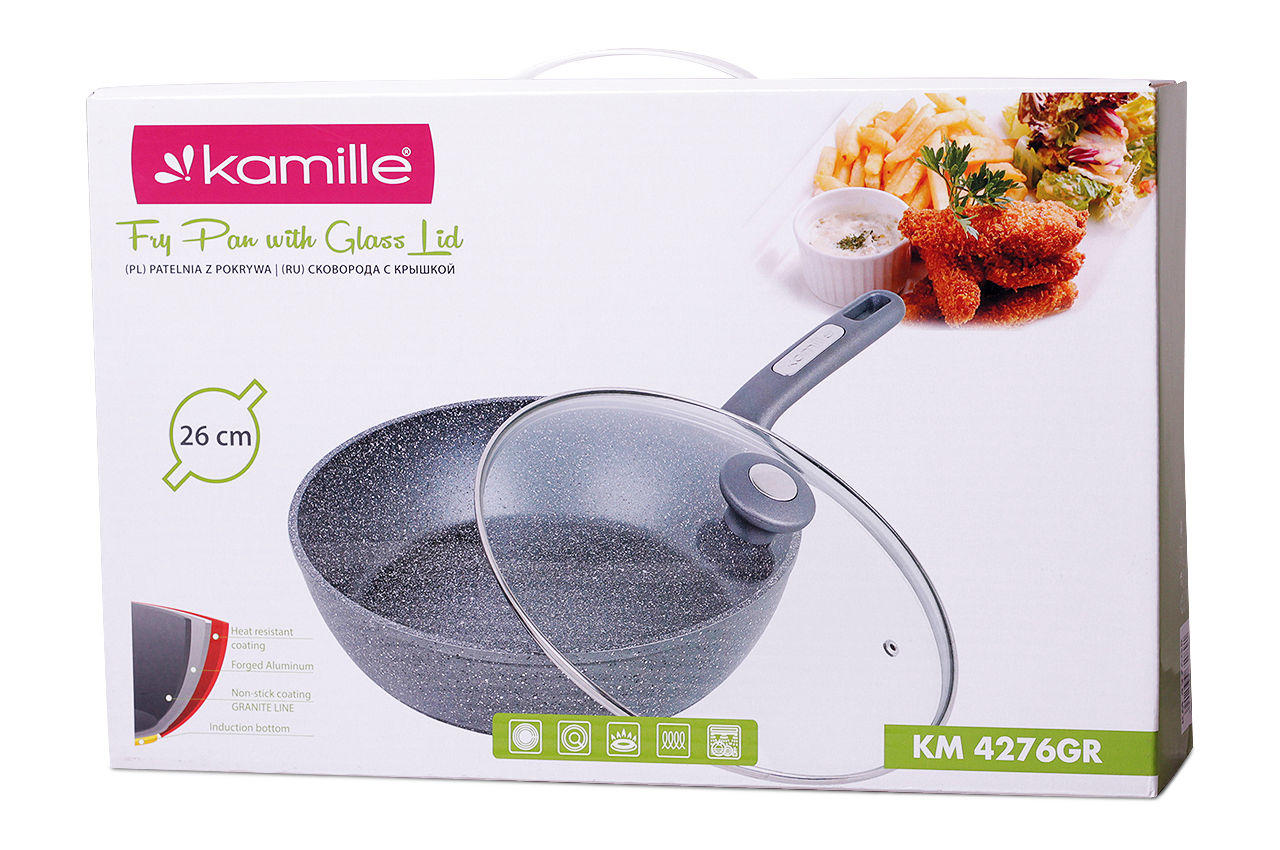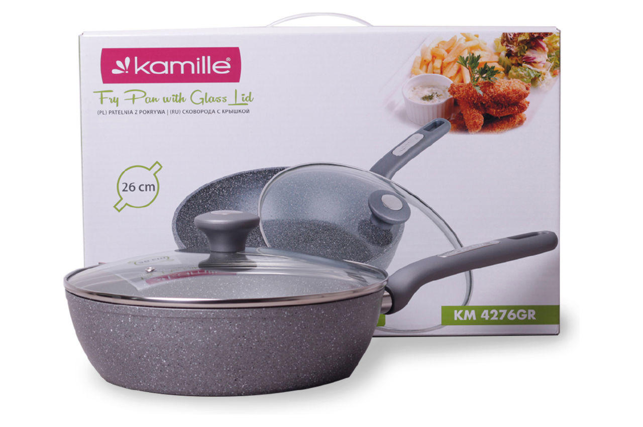 Сковорода антипригарна Kamille - 260 мм Granite глибока з кришкою